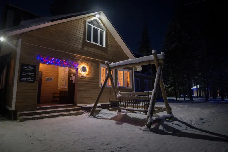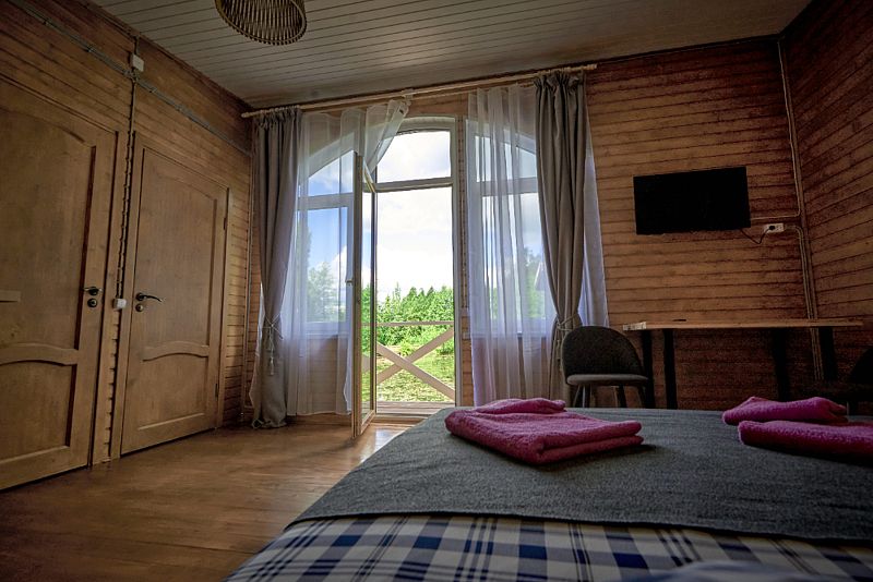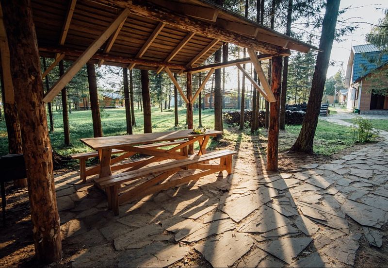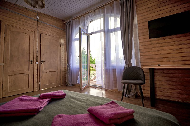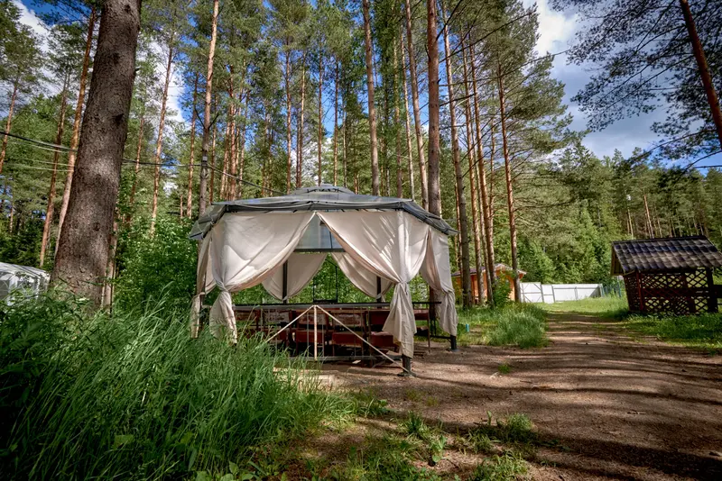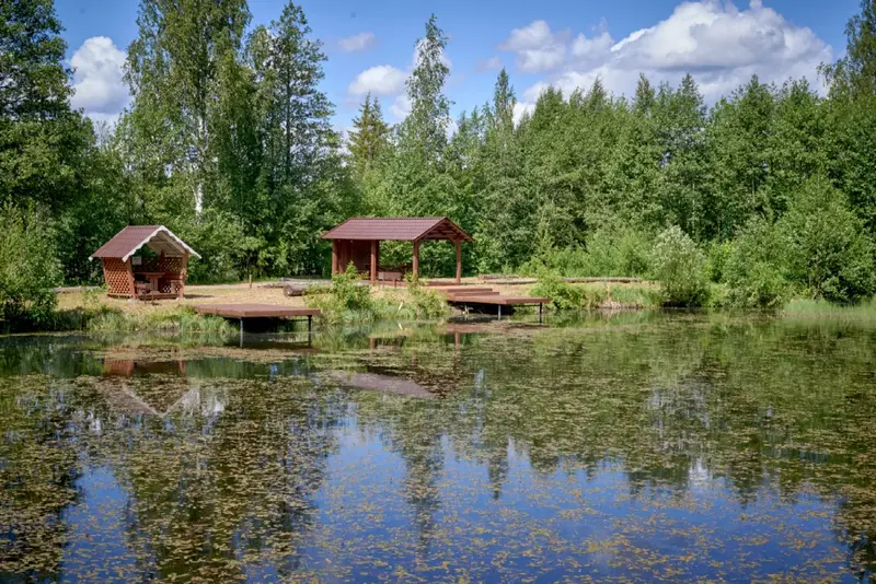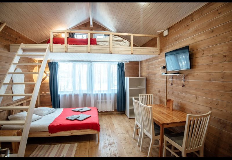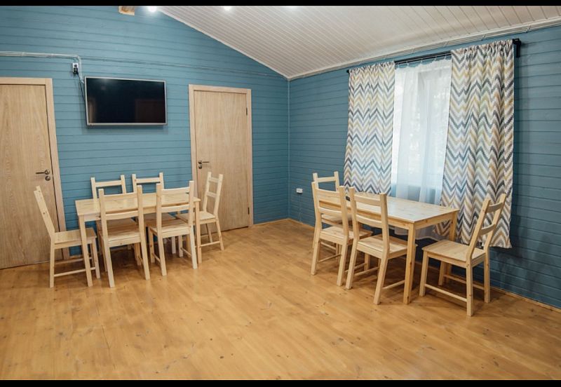 Семейный отдыхДостоинстваОтдыхали здесь в прошлом году В кафе хорошо кормят, есть русская баня, для празднования свадьбы или день рождения можно арендовать большой шатер. Работает прокат велосипедов и спортивного снаряжения. В домике есть туалет и душевая кабинка, телевизор, посуда и мини кухня.