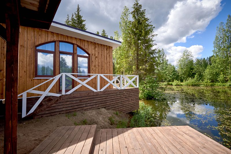 Особенностью данного коттеджа является наличие меблированной террасы с мангальной зоной и собственного пирса, откуда можно любоваться видами озера. Для удобства гостей предоставляется постельное белье и полотенца, а использование мангала около коттеджа включено в стоимость проживания.