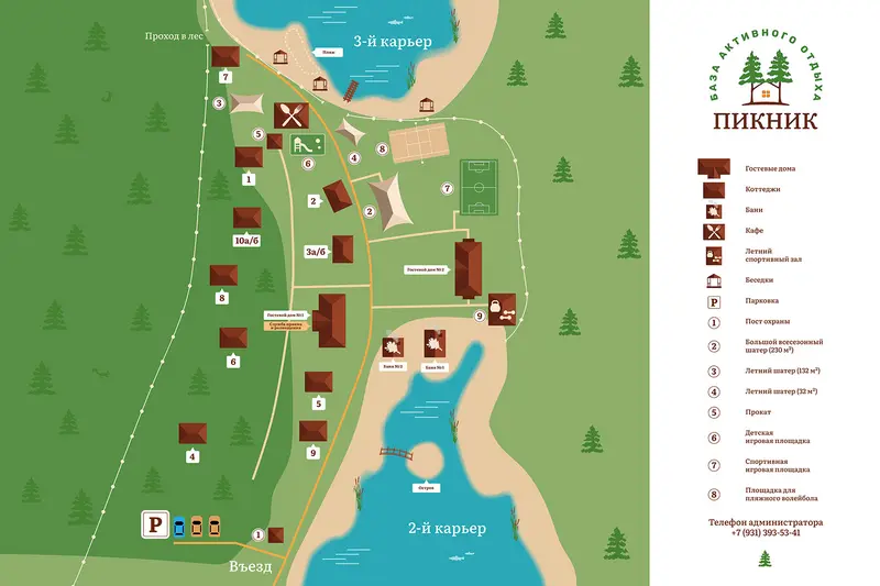 Благоустроенная детская территория базы отдыха Пикник включает в себя горки, качели, лазелки, песочницу. Детская площадка разделена на несколько зон, где каждый непоседа найдет подходящее увлечение.