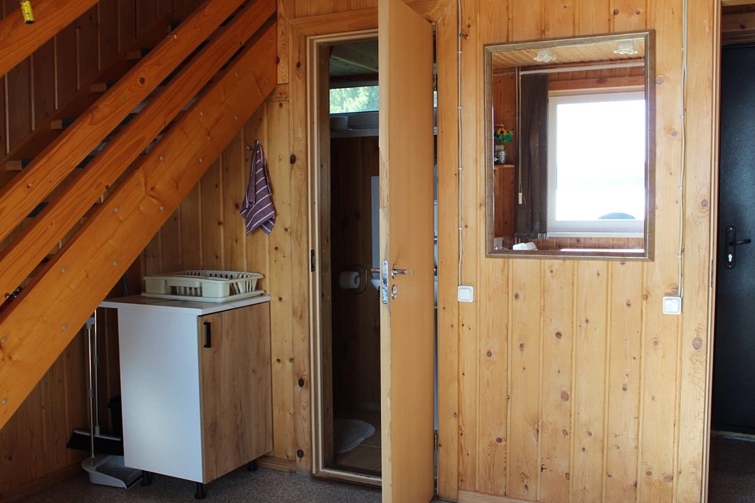 На первом этаже расположены 3 комнаты с двумя раздельными кроватями и конференц-зал с телевизором для проведения застолья, вашего мероприятия или приятно посидеть за шашлычком. 4 двуспальных номера с раздельными одноместными кроватями. На кухне есть холодильник, плита, духовая печь, микроволновая печь, чайник, посуда и обеденный стол. Также санузел с душевой кабиной.