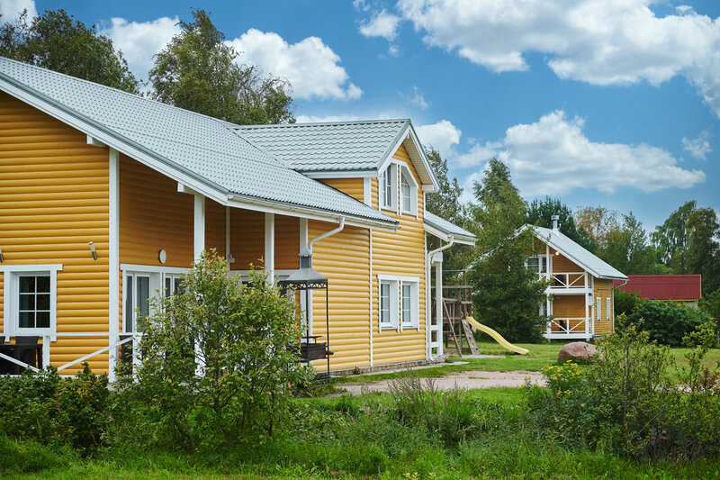 На территории базы расположено 4 уютных коттеджа разной вместительности и дом на воде.
