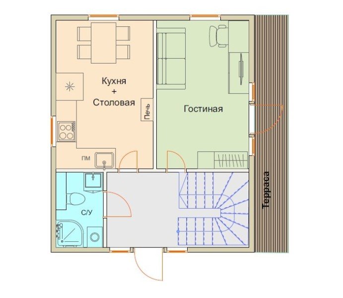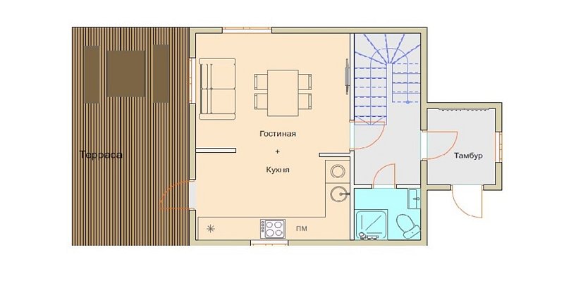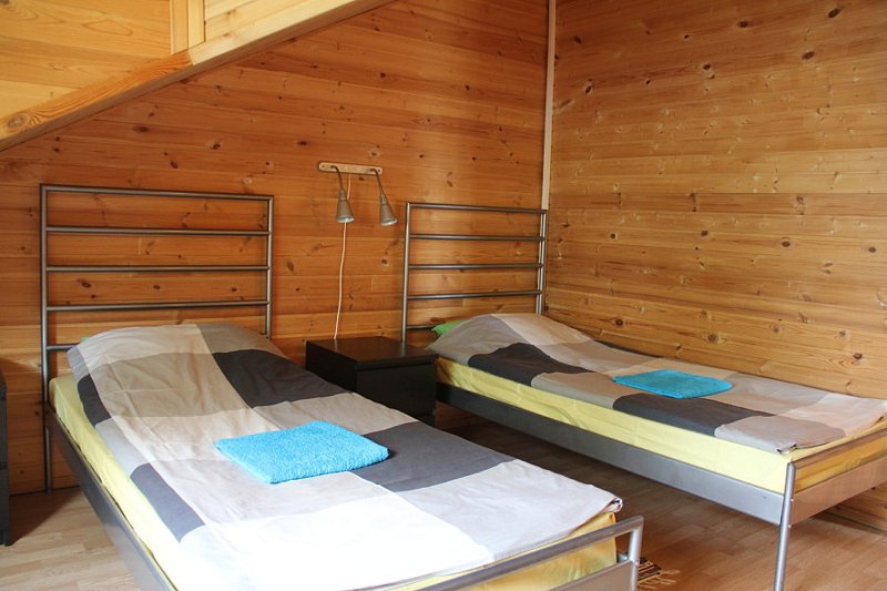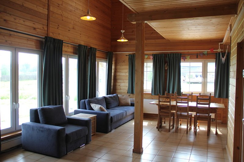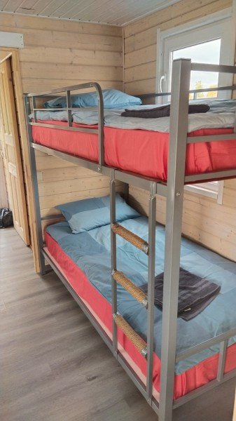 В доме: спальная зона (2 двухъярусные кровати), кухня-гостиная (стол, стулья, холодильник, плита, чайник, все кухонные принадлежности), туалет, душ, постельное белье, полотенца.
