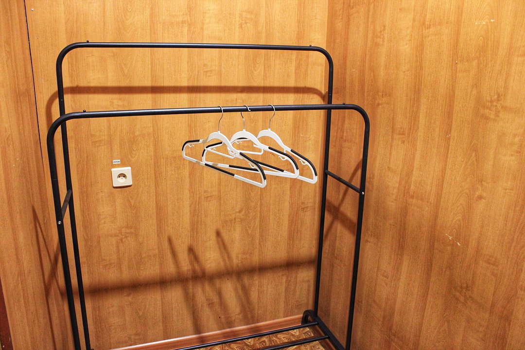 В номере: одна двуспальная кровать, тахта, стол, стулья, телевизор, холодильник, тумбочка, вешалка, туалет и душ.