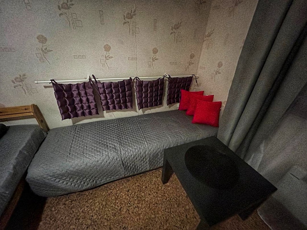 Четырёхместный номер с общими душем и туалетом на этаже.