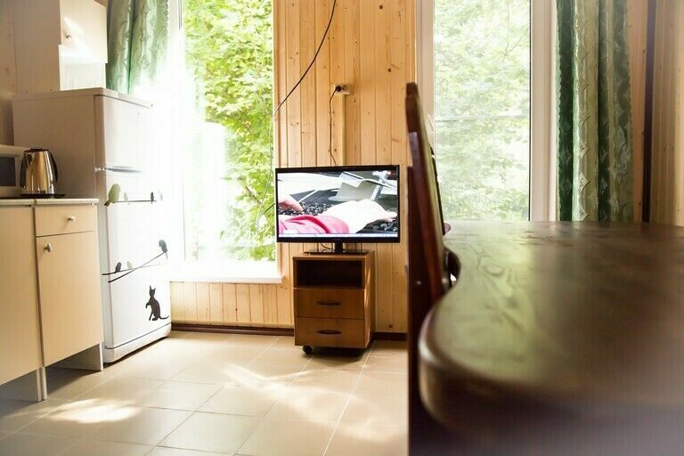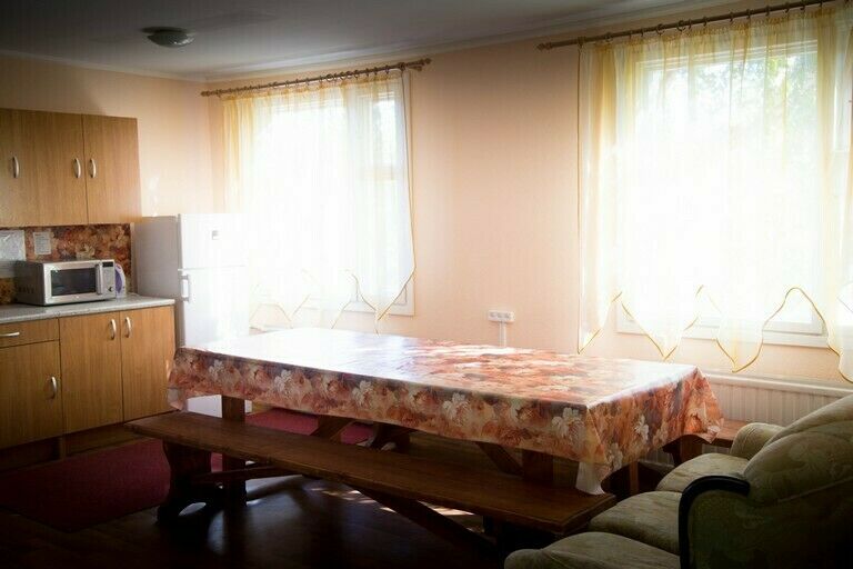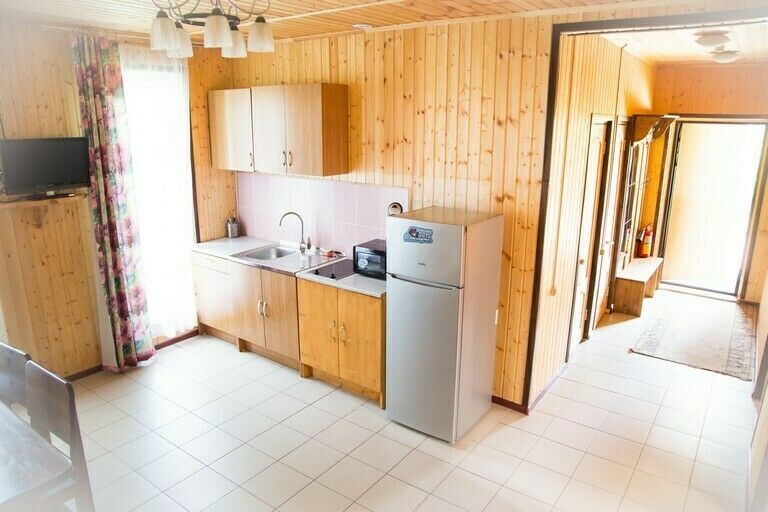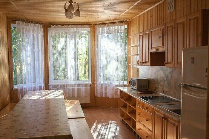 Коттедж оборудован всем необходимым для комфортного отдыха вещами. Если компания любит сама готовить, то в её распоряжении имеется кухня, оборудованная всем необходимым для этого.