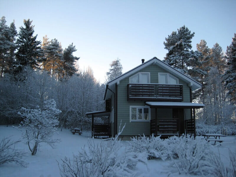 Снимите уютный, отдельный коттедж рядом с озером. Дом выполнен в скандинавском стиле из бруса с хорошим утеплением — 80 м2, двухкамерные стеклопакеты, балкон, большая крытая веранда с мебелью ,теплый пол на первом этаже. Постельное белье, полотенца, хоз. принадлежности, гель для душа, шампунь — в комплекте. В доме: На первом этаже гостиная с теплосберегающим немецким камином, оборудованная кухня: электроплита, микроволновая печь, электрочайник, холодильник, посудомоечная машина, вся посуда на 6 персон. Ж/к телевизор ( 37 дюймов ), антенна Триколор — 200 каналов, большой стол, угловой мягкий диван, теплый пол на всей площади, санузел с душем и сауной. На втором этаже: 2 отдельных спальни с электрическими обогревателями, балконы, санузел. Коттедж рассчитан на комфортное размещение до 6-ти человек. Возле коттеджа своя зона: стол, скамейка, мангал. Зона WI-FI на всей территории — бесплатно.