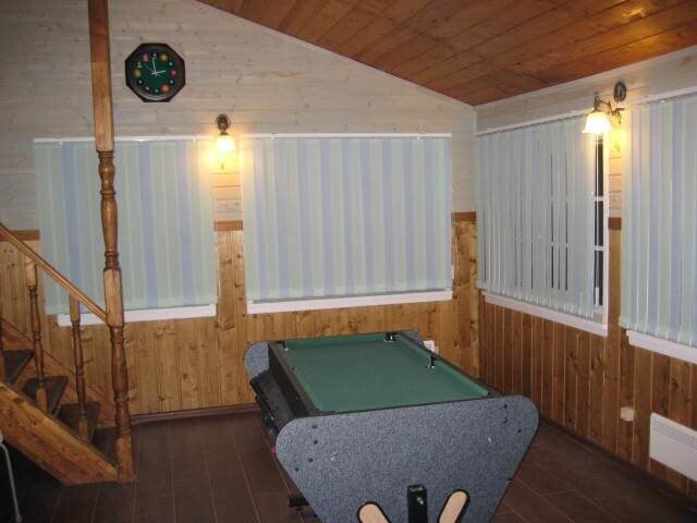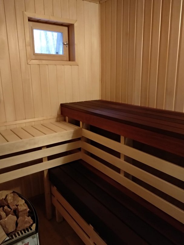 На территории, в непосредственной близости от озера с пирсом, расположена уютная баня. Жарко топится дровами, березовые и дубовые веники в наличии. Парилка рассчитана на 4 человека. Помывочная с обливным устройством холодной водой, купель с озерной водой, туалет , комната отдыха с DVD.