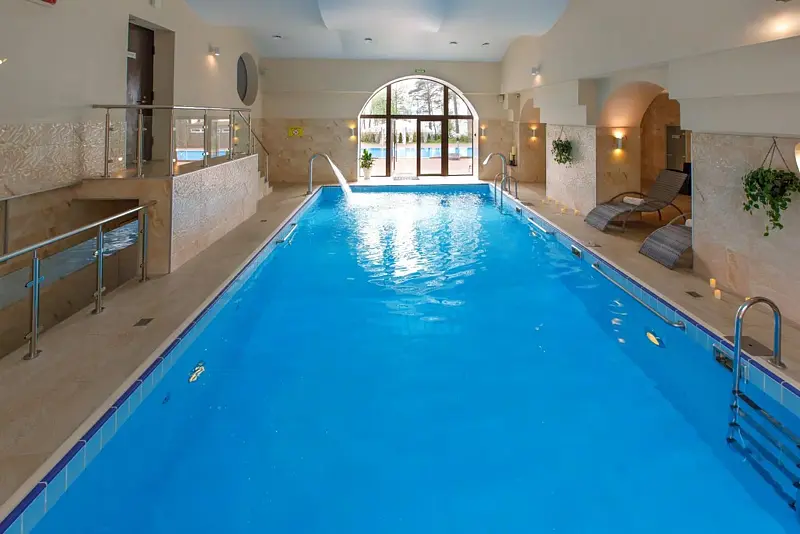Тип бассейна: крытый бассейнВода в бассейне: подогреваемый бассейнРядом с бассейном: шезлонгиРазмеры: 10 x 5 мПлощадь: 50 м²Время работы: от 9:00 до 22:00Период работы: круглогодичноСанитарный день — каждый последний вторник месяца с 9:00 до 15:00.