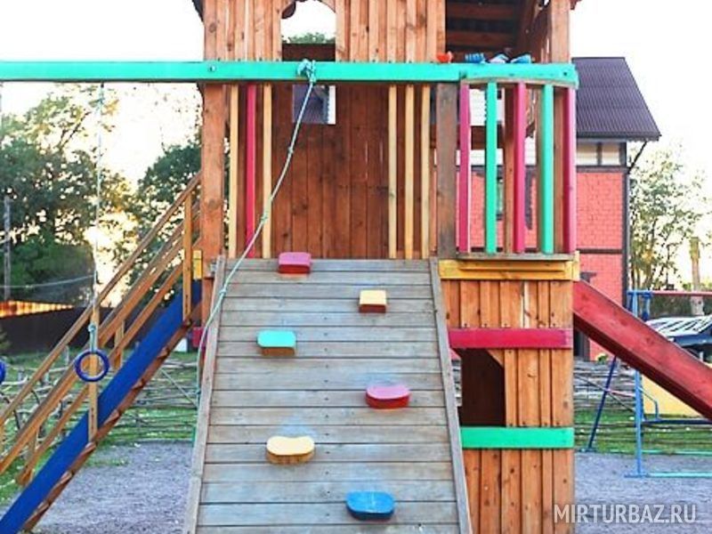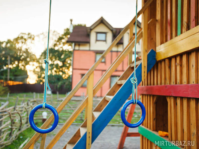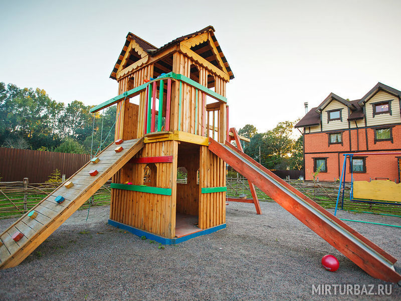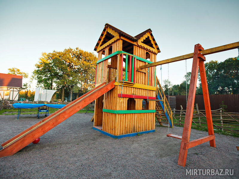 Детская площадка, расположенная на территории базы отдыха «Причудье», стала местом для увлекательных игр, которые позволяют малышам занимательно и весело проводить время: кататься на горке, качелях, карабкаться по канатам и лестницам.