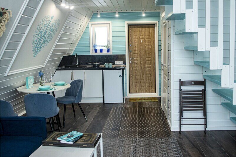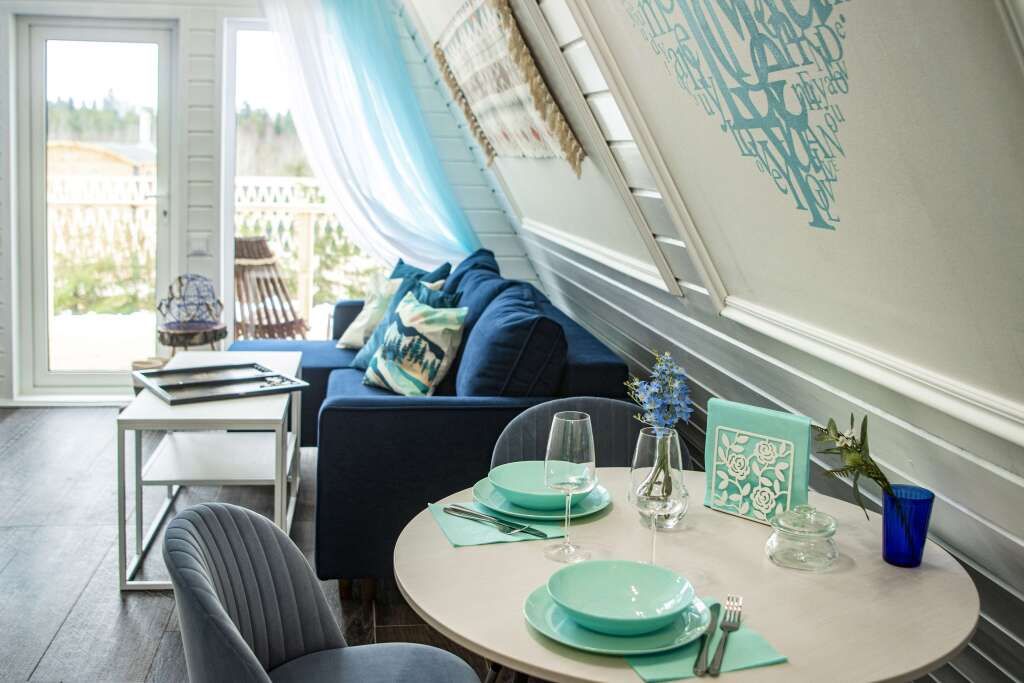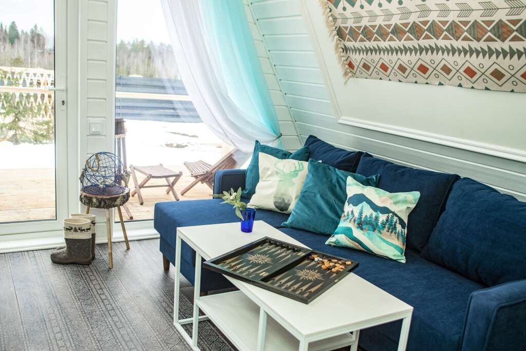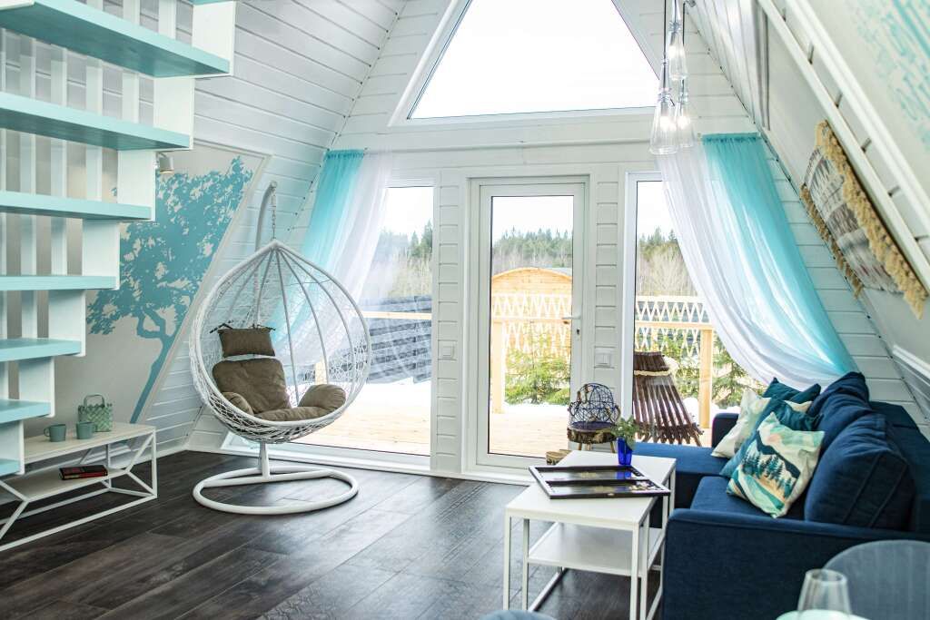 Коттедж «Зима» — новый 4-хместный дизайнерский коттедж(А-frame), оформленный в бирюзовых тонах с двуспальной кроватью и раскладным диваном. Бесплатная парковка, Wi-fi, беседки для барбекю.