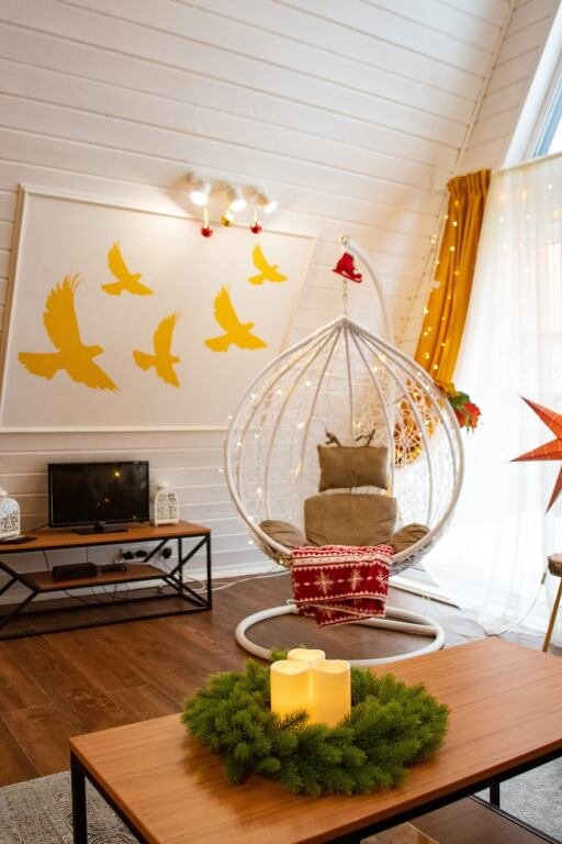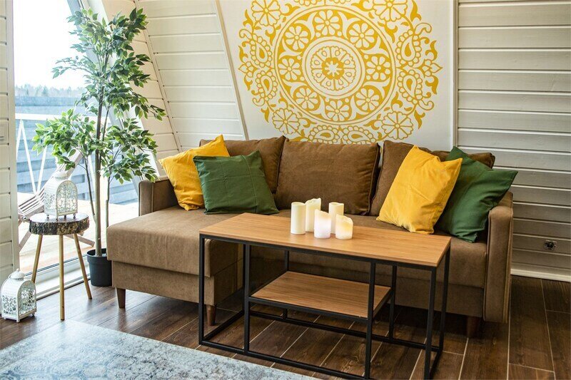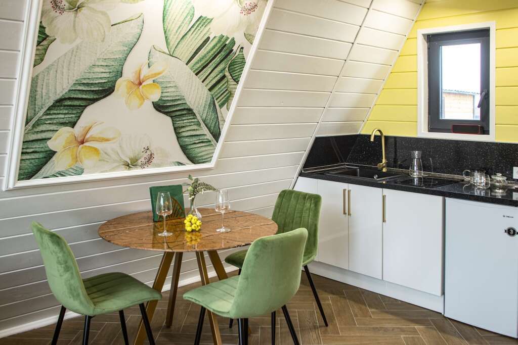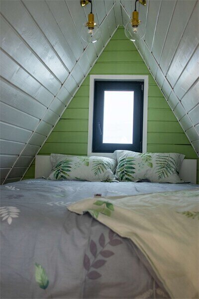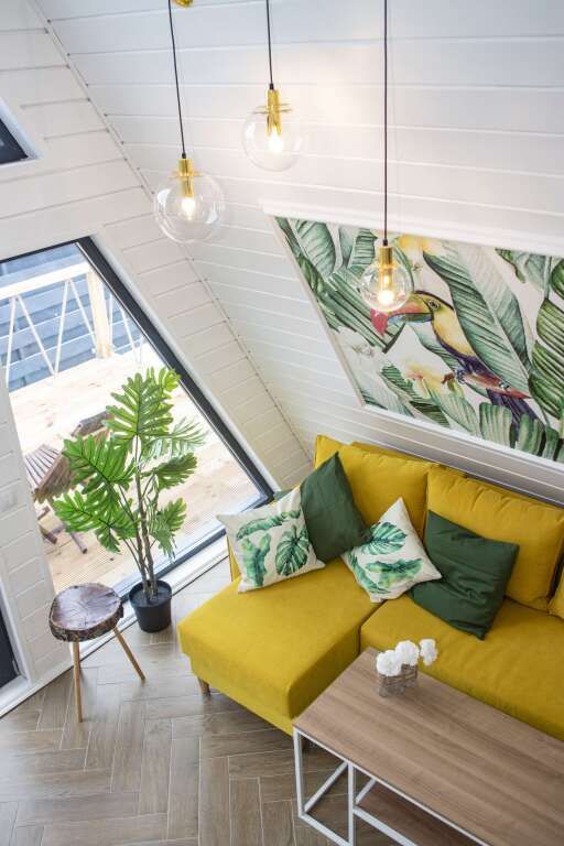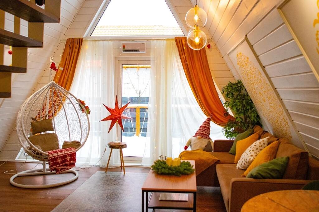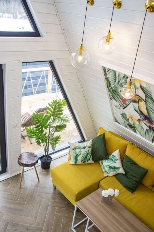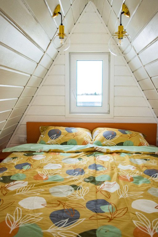 Коттедж «Лето» — новый 4-хместный дизайнерский коттедж(А-frame), оформленный в летних цветовых тонах с двуспальной кроватью и раскладным диваном. Бесплатная парковка, Wi-fi, беседки для барбекю.