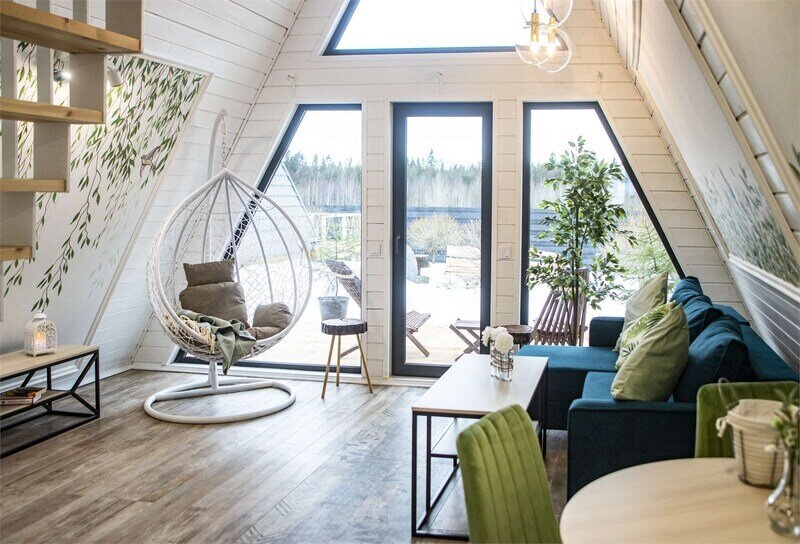 Гостевой дом «Пятый сезон» — это уникальные дизайнерские коттеджи А-frame всего в 25 километрах от Санкт-Петербурга.