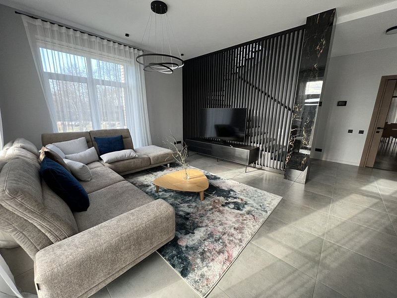 Новый технологичный дом современного дизайна. Общая площадь дома 175 м2. + 60 м2. эксплуатируемой кровли. Первый этаж: прихожая, кухня/столовая/гостиная 44,5 м.2., санузел/котельная, раздевалка, душевая, сауна, хоз. помещение. Второй этаж: спальня 10,5 м2. (двухспальная кровать king-size); спальня 16,9 м2. (двухспальная кровать king-size и рабочее место); спальня 16,4 м2. (двухспальная кровать king-size и рабочее место); холл/гостиная 28,8 м2., (двухспальный диван-кровать), санузел/душевая.