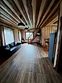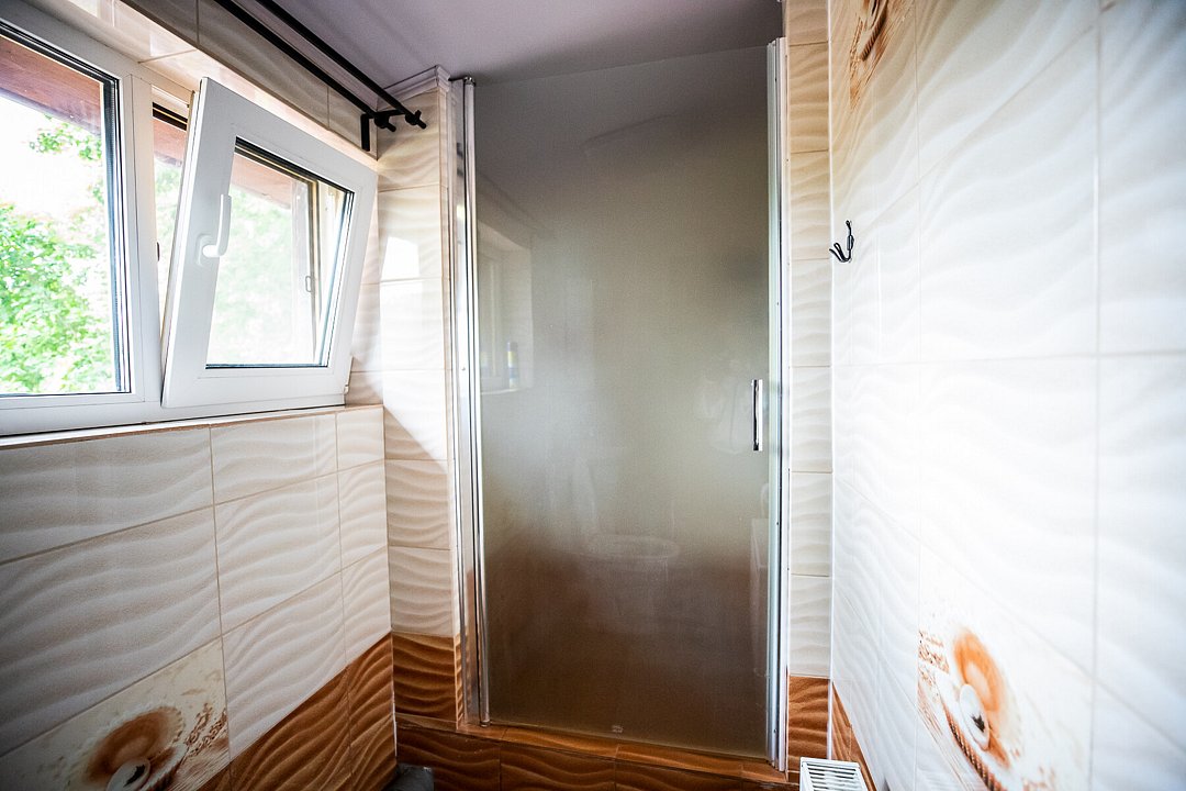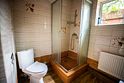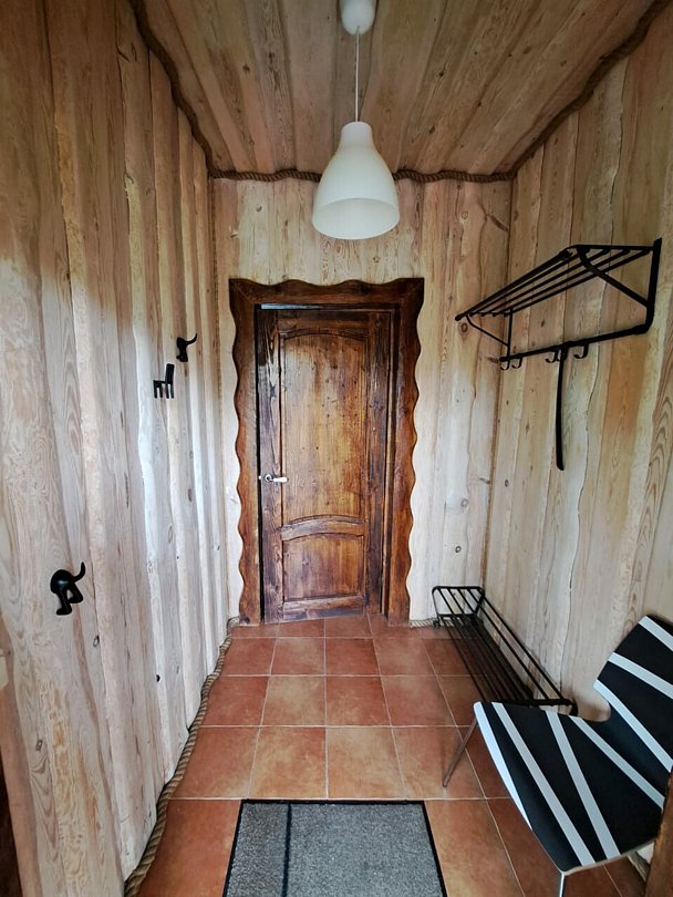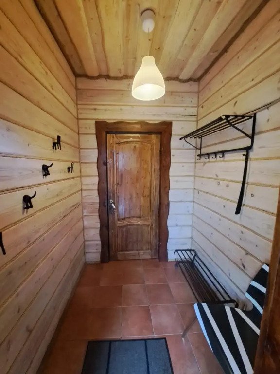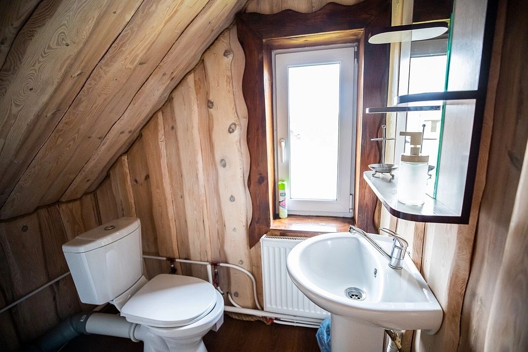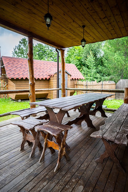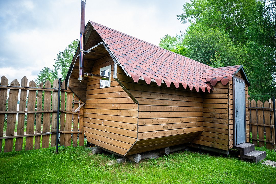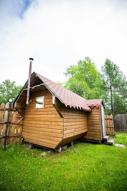 Внутри баня обшита вагонкой из липы, поскольку именно липа – наиболее подходящий материал для внутренней отделки бани и сауны. В условиях высокой температуры вагонка и полог из липы не выделяют смолу и, соответственно, не нагреваются и не обжигают.