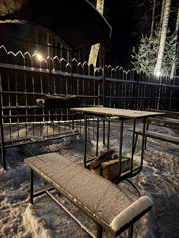 У коттеджа имеется собственная территория с мангалом и парковкой.