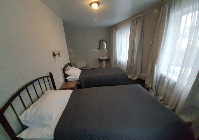 - номера с двуспальной кроватью, раковиной, зеркалом, тумбочкой.