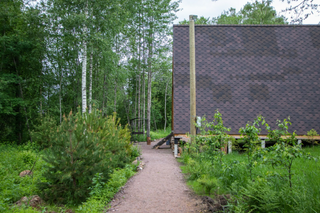 От шале ведет живописная эко-тропинка, приглашая вас на прогулку по окружающей природе. Здесь вы сможете насладиться свежим воздухом, красотой леса и пением птиц.