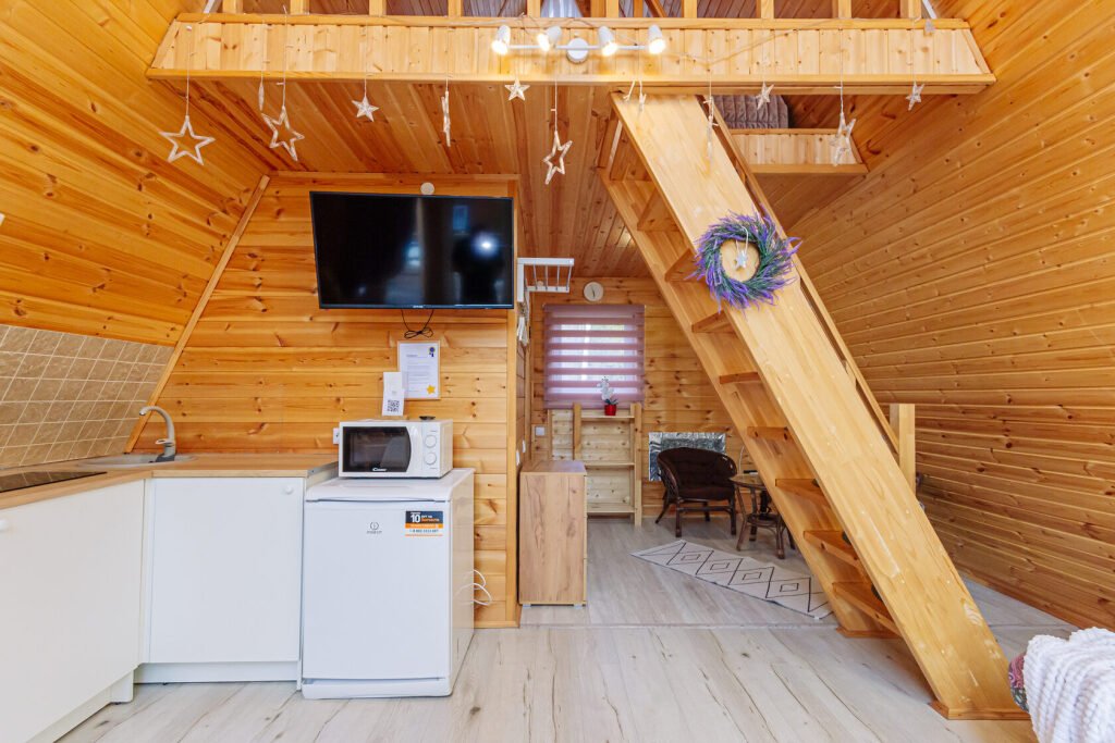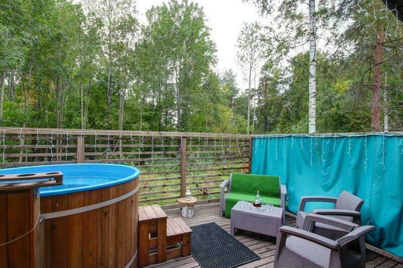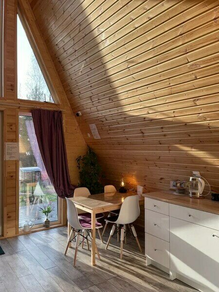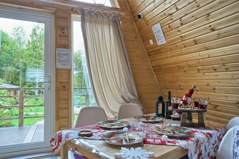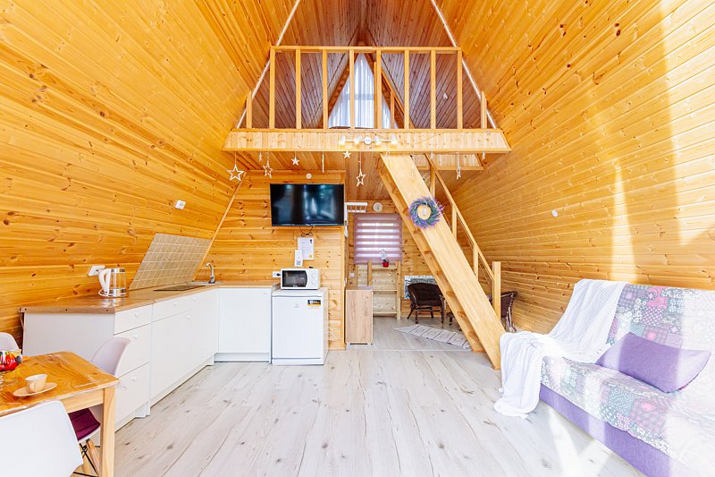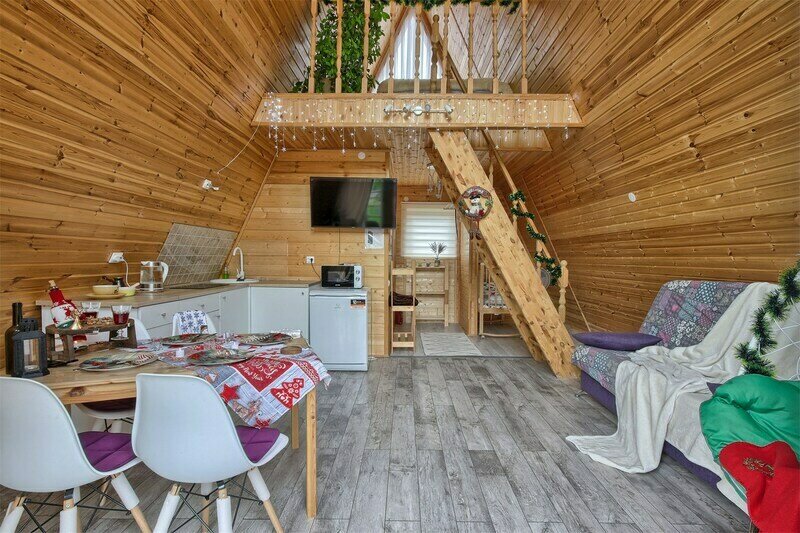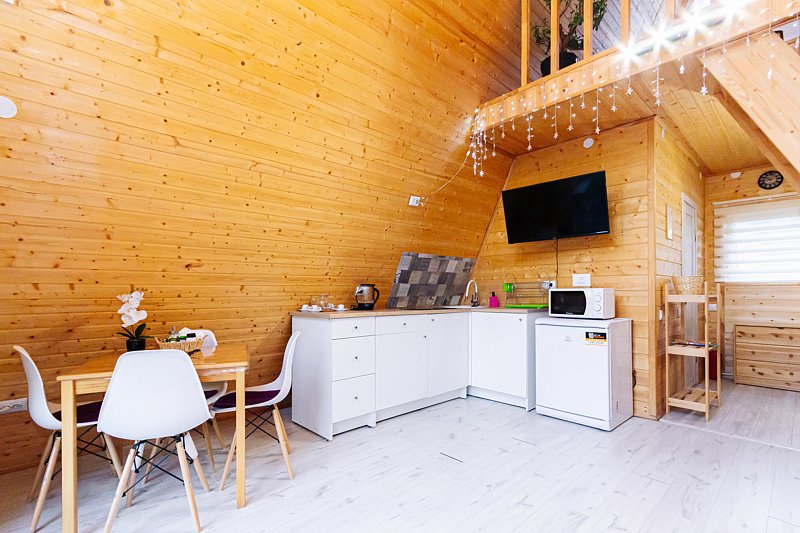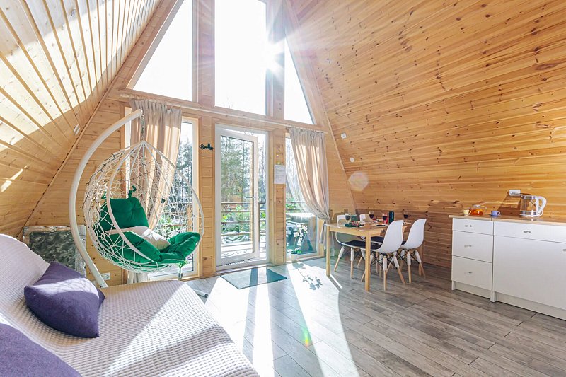 Здесь можно снять роскошный дом-шале со всеми удобствами, отлично подходящий для длительного проживания, шале большое на компанию до 10 человек, лаконичный маленький домик-шале для любителей романтики и минимализма. Гости могут заказать еду с доставкой или посетить ближайший ресторан. Также доступна аренда бани на дровах, бочка-джакузи с подсветкой и гриль беседка с мангалом.
