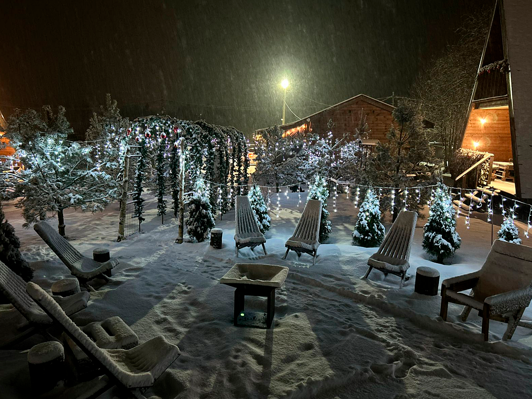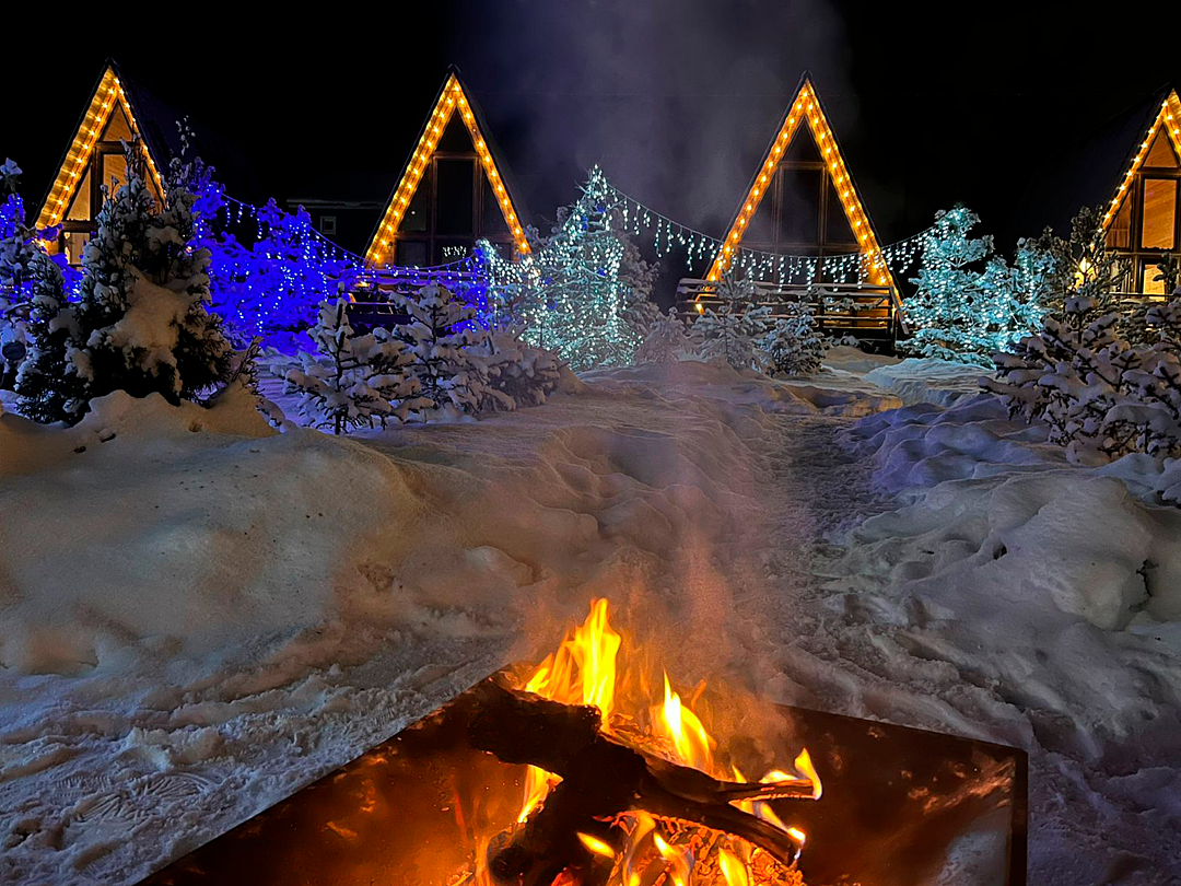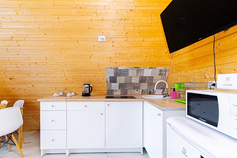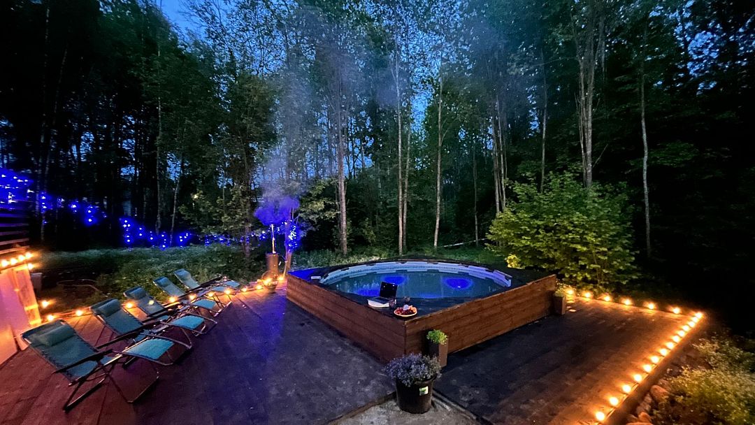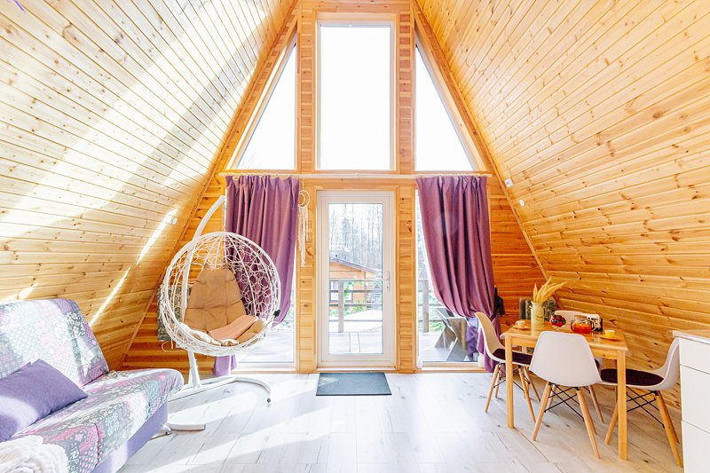 Здесь можно снять роскошный дом-шале со всеми удобствами, отлично подходящий для длительного проживания, шале большое на компанию до 10 человек, лаконичный маленький домик-шале для любителей романтики и минимализма. Гости могут заказать еду с доставкой или посетить ближайший ресторан. Также доступна аренда бани на дровах, бочка-джакузи с подсветкой и гриль беседка с мангалом.