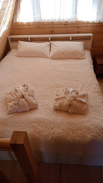 И заботой . Сразу видно , что хозяева хорошо вложились , денег не пожалели . Мы зашли в домик и увидели шарики и лепестки роз на кровати , нам сделали такой подарок и это было безумно приятно . В домике есть все необходимое . Также на территории проживают администраторы, которые всегда вам помогают, очень добрые и отзывчивые . Также на территории есть купель, баня , детская площадка, гриль домик , лобное место , кальянная зона ! Это место просто находка ! За последние 6 месяцев мы побывали там уже раз 6 точно ! И обязательно еще вернёмся ни раз !!!!