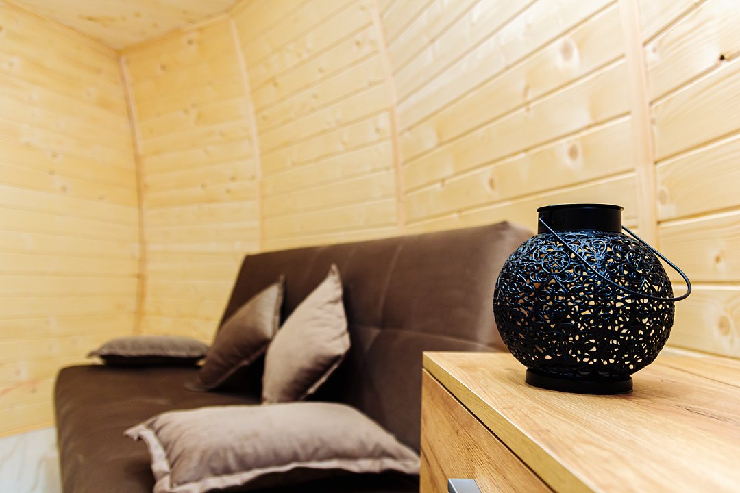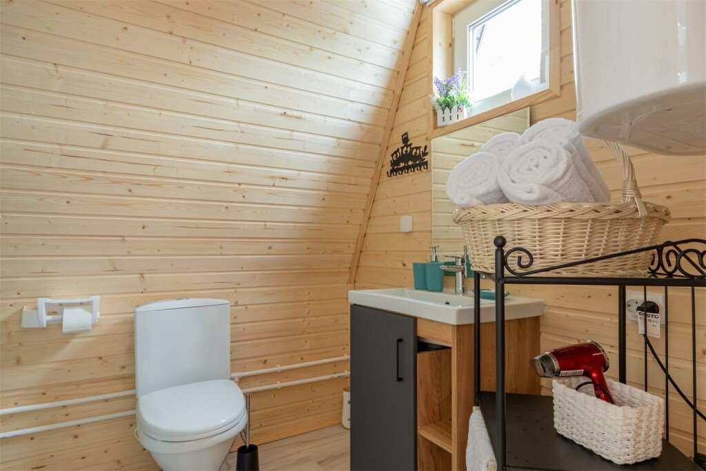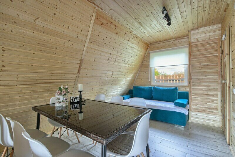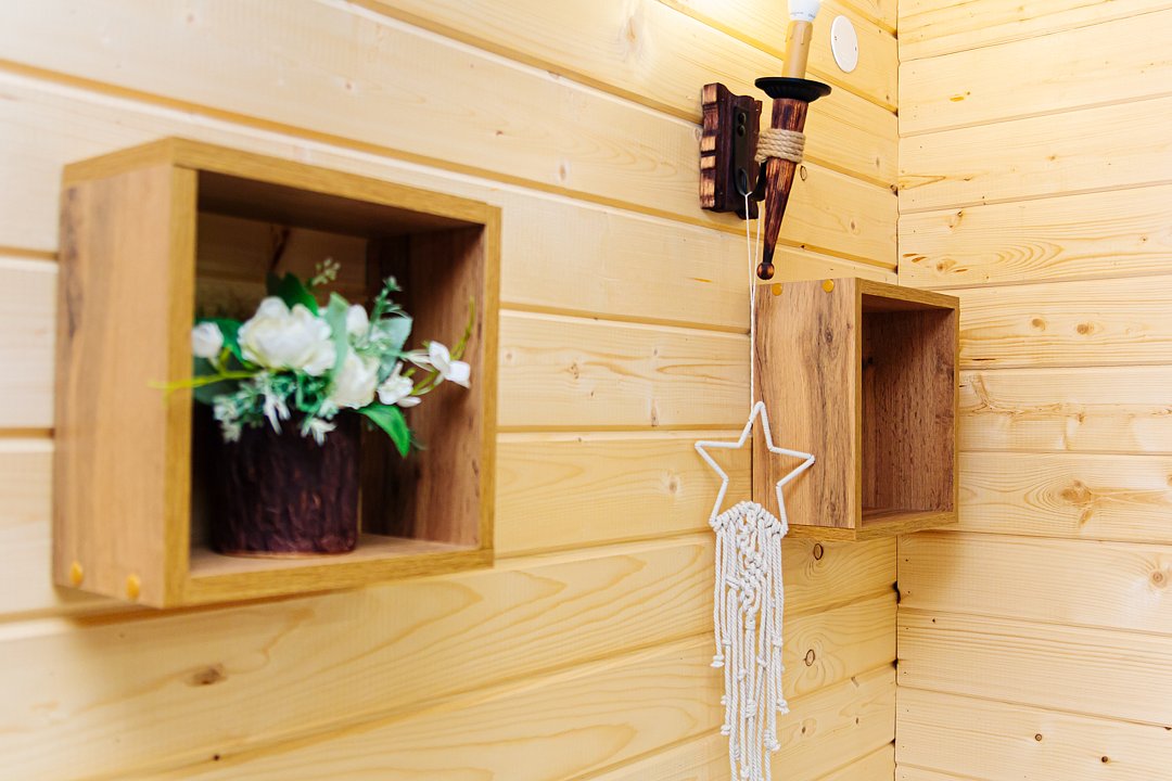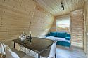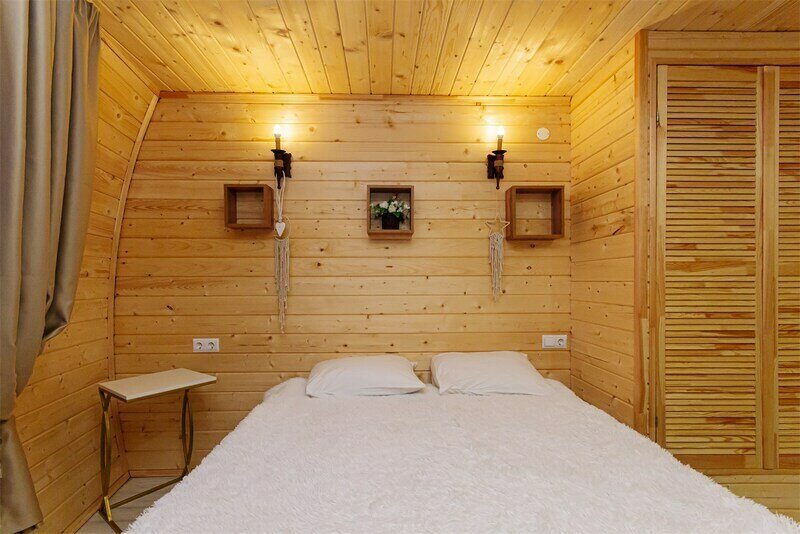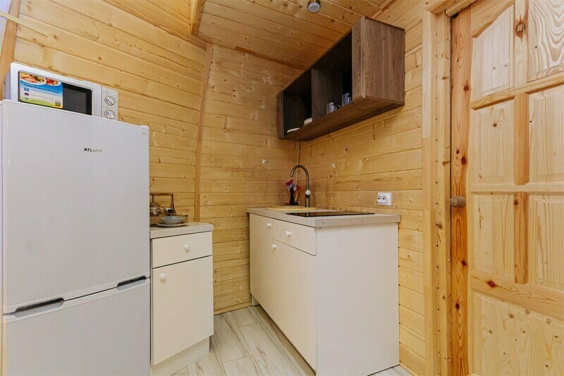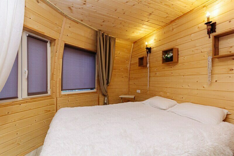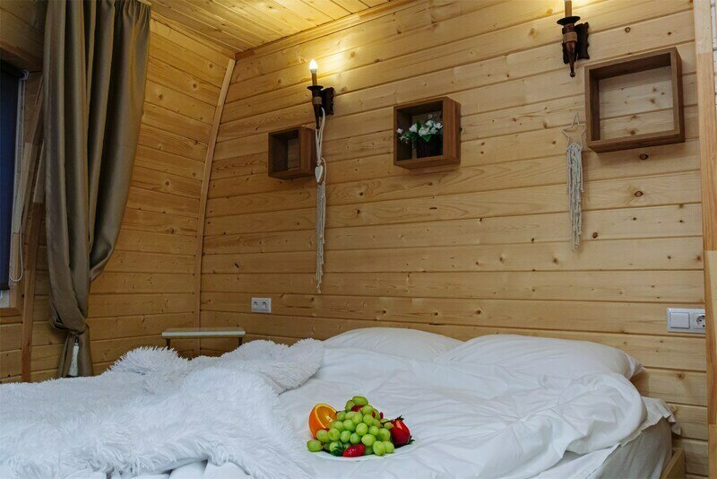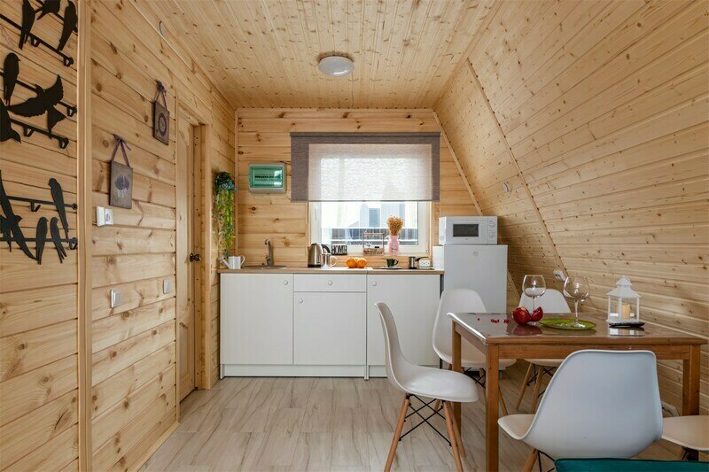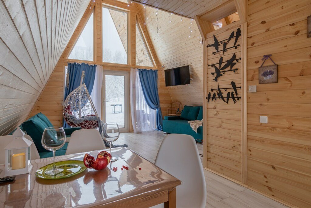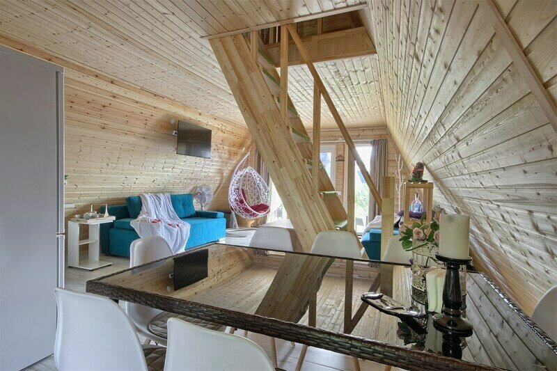 Треугольный дизайнерский домик— шале №2 (вместимость до 6 человек), общая площадь 52 кв.м. Дом для отдыха полностью выполнен из дерева и оборудован для комфортного отдыха. В доме теплые водяные полы с датчиком регулировки температуры, настенный кварцевый обогреватель, вентилятор, установлен бойлер, современный экологический септик. Весь декор в доме ручной работы.