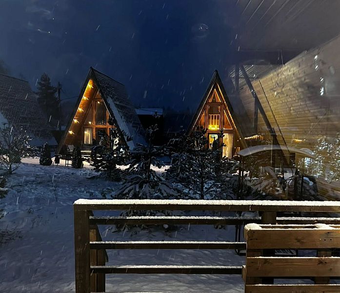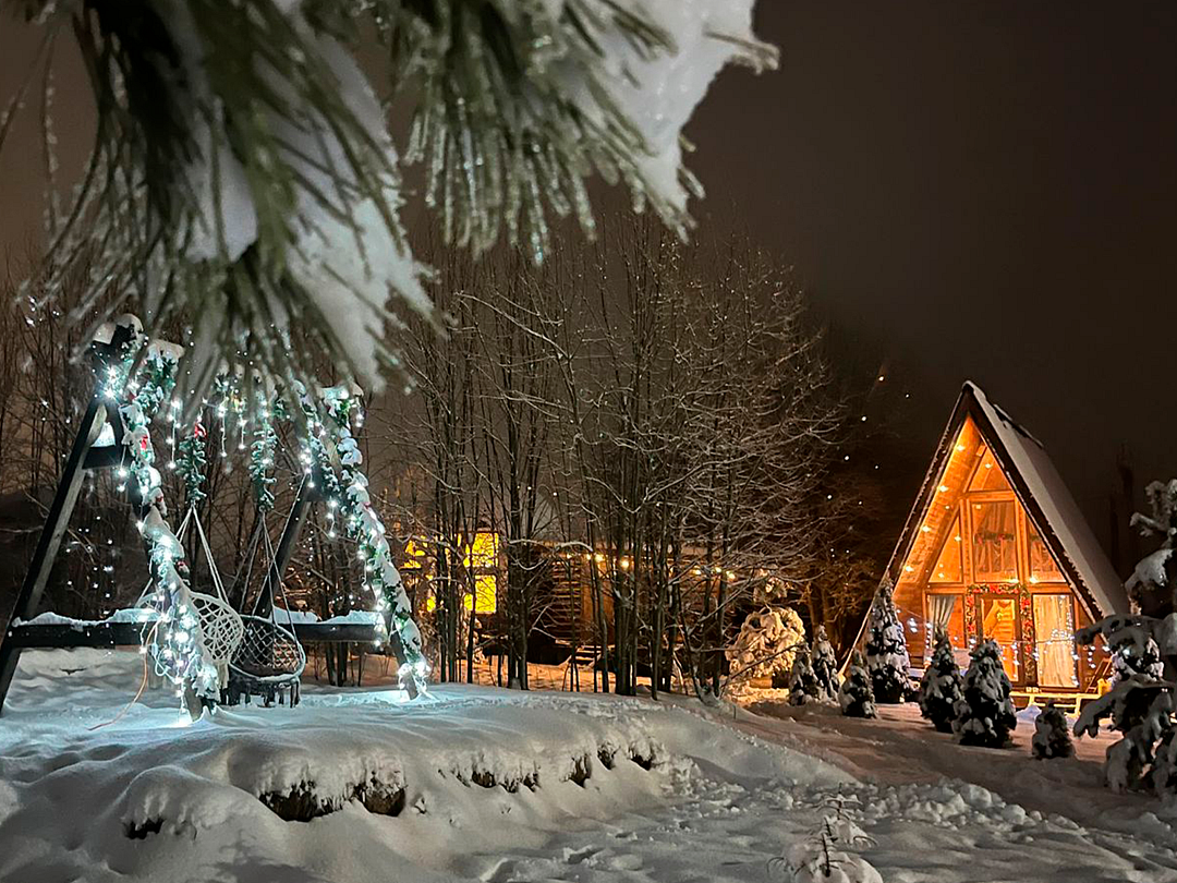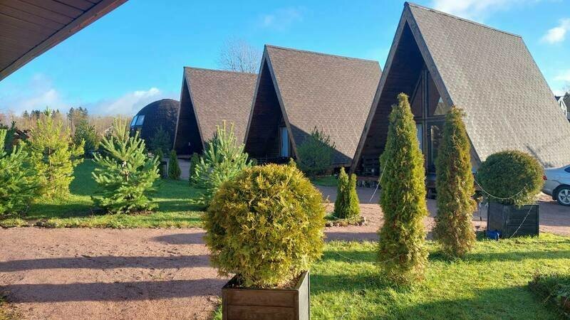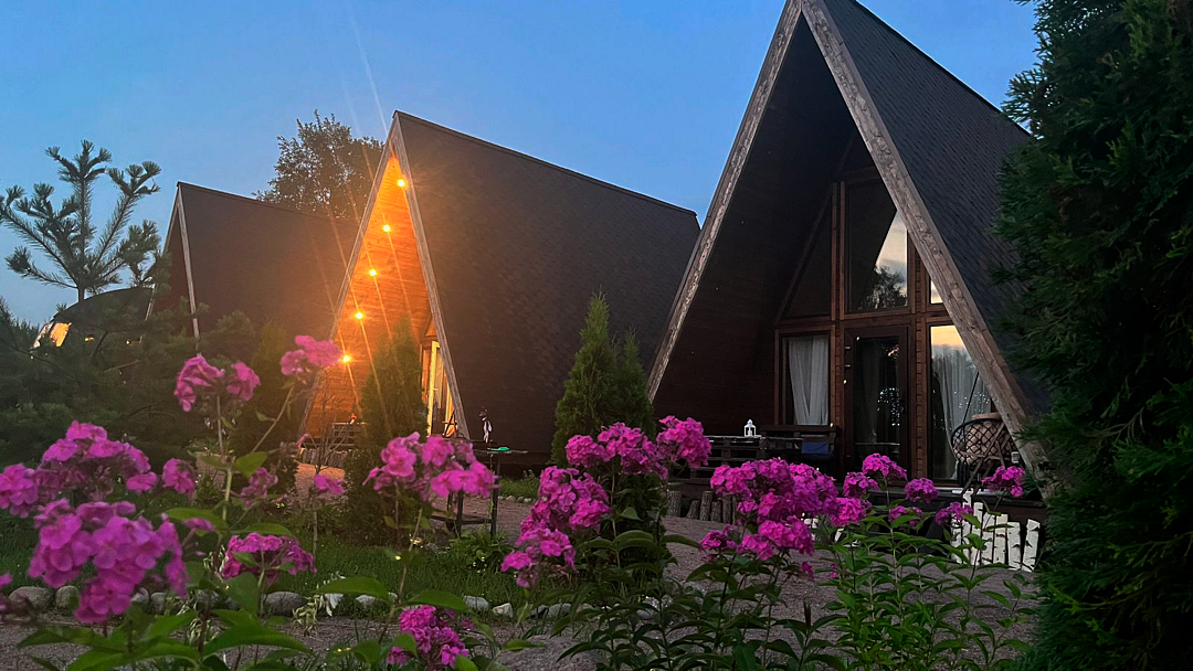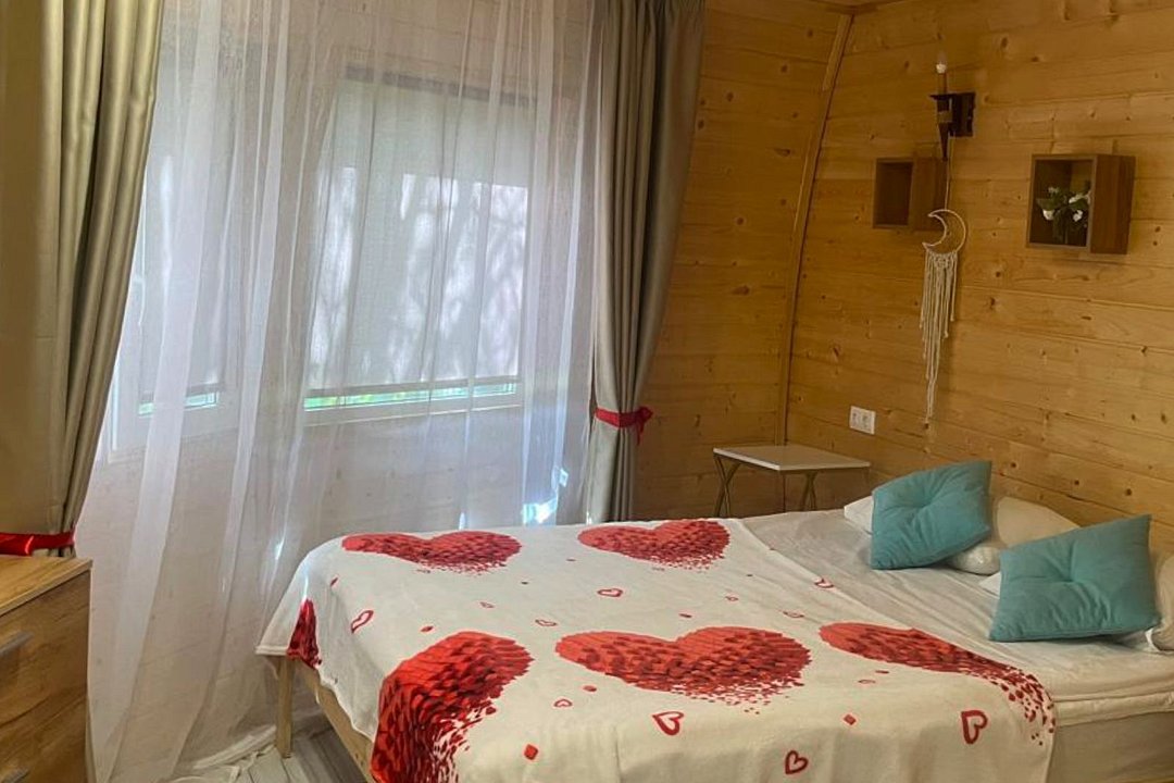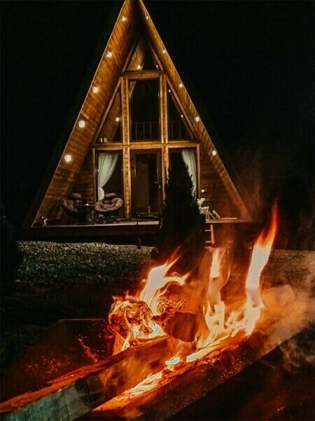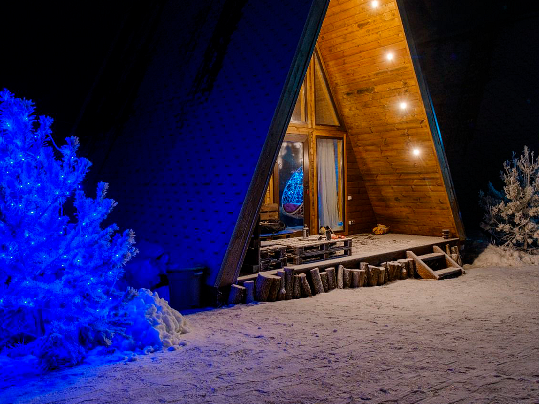 Треугольный дизайнерский домик— шале №1 (вместимость до 6 человек), общая площадь 52 кв.м. Дом для отдыха полностью выполнен из дерева и оборудован для комфортного отдыха. В доме теплые водяные полы с датчиком регулировки температуры, настенный кварцевый обогреватель, вентилятор, установлен бойлер, современный экологический септик. Весь декор в доме ручной работы.