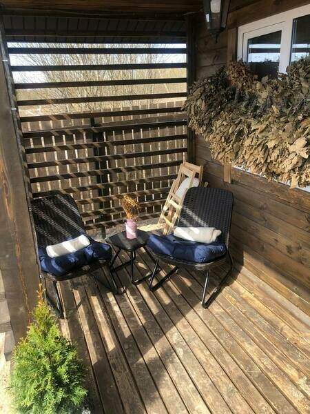 - терраса со стульями, столом;