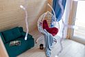 - Спальная на втором этаже (двуспальная кровать 160х220, кресло/кровать с независимым пружинным блоком и ортопедическим основанием, прикроватные тумбы, дизайнерские кресла, журнальный стол, напольная вешалка)