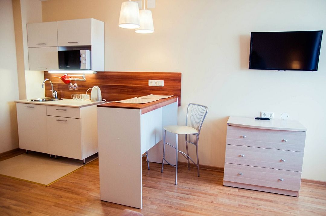 Семейные апартаменты (или студии) в гостинице «Репинская» — это небольшие квартиры внутри отеля. Широкая кровать придется по душе любителям сладкого и крепкого сна, а просторная ванная комната и мягкое белье обеспечат дополнительный комфорт. Все номера "STUDIO" оборудованы мини-кухней. Во всех номерах возможно предоставление дополнительного спального места на раскладном диване.Услуги и удобства