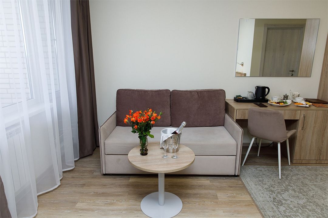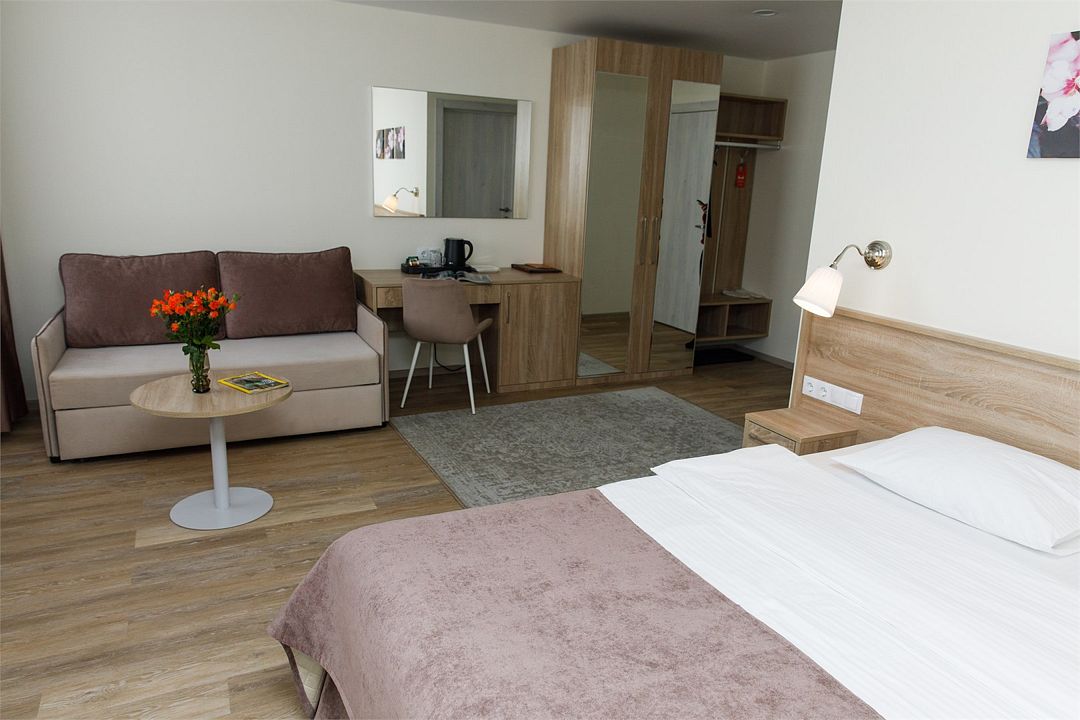 Номера категории стандарт улучшенный прекрасно подходят как для уединенного отдыха, так и для деловой поездки.Современный комфорт, эстетическая привлекательность – отличительная особенность этих номеров.Услуги и удобства