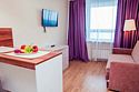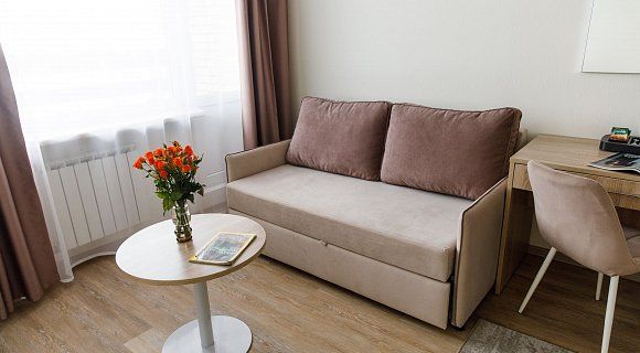 Запрещено проживание с домашними животными. Просторные "Семейные" номера идеально подходят для отдыха всей семьей. Атмосфера номера создает ощущение домашнего уюта. В номерах могут размещаться два или три гостя. Во всех номерах возможно предоставление дополнительного спального места на раскладном диване. Кроме раскладного дивана по запросу гостей в номер можно поставить детскую кроватку. "Семейный номер" - прекрасный вариант для семейного отдыха, отдыха с детьми. В нем может разместиться семья до 4-х человек. В каждом номере два выхода на балкон. Площадь номера – 26 кв.м.Услуги и удобства