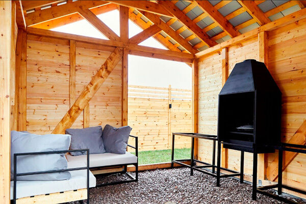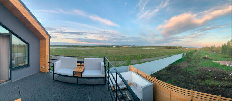 Прекрасное место для отдыха с семьей или друзьями. Каждая резиденция состоит из 5 спален, огромной гостиной со встроенной кухней, сауны, трех ванных комнат, дровяной всепогодной купели, беседки для барбекю или банкета, костровой зоны, летней террасы для завтрака, собственного летнего кинотеатра с большим экраном и террасы для принятия солнечных ванн. У каждой резиденции своя парковка на три автомобиля и просторная лужайка для банкетного шатра. Резиденция имеет красивый вид на поля. Халаты, тапочки, полотенца для сауны, шампунь и гель для душа входят в стоимость аренды. Так же как все необходимое для приготовления барбекю. Очень приятным дополнением является массажное кресло-качалка японского производителя Ямагучи, а также массажер для ног, очиститель и увлажнитель воздуха. Сделайте свой отдых действительно расслабляющим!
