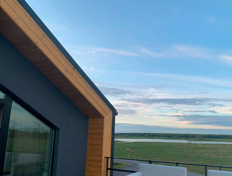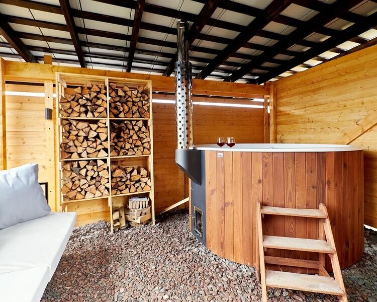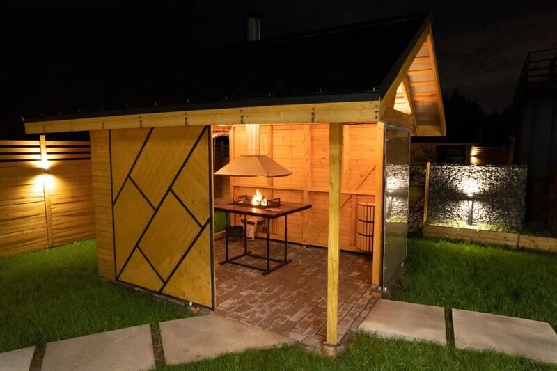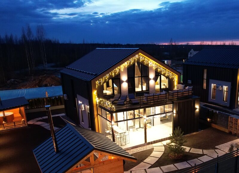 Прекрасное место для отдыха с семьей или друзьями. Резиденция состоит из 5 спален, огромной гостиной со встроенной кухней, сауны, трех ванных комнат, большой дровяной всепогодной купели, собственного места для барбекю, костровой зоны, летней террасы для завтрака, собственного летнего кинотеатра с большим экраном и террасы для принятия солнечных ванн.