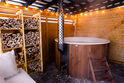 wi-fi, в каждой комнате теплые полы, телевизоры, кондиционеры, кухня с необходимым оборудованием и посудой, просторная гостиная, звукоизоляция, шторы блекаут, ванная, душ, терраса с лежаками, терраса- барная зона с экраном и проектором, утюг, гладильные принадлежности, стиральная машина, фен, гигиенические принадлежности, универсальная сауна/баня/хамам, подогреваемая дровянная купель, зона барбекю с мангалом, костровая зона, большая купель ( в 2 раза больше, чем в стандарте), большой стол в гостиной на 20 чел.
