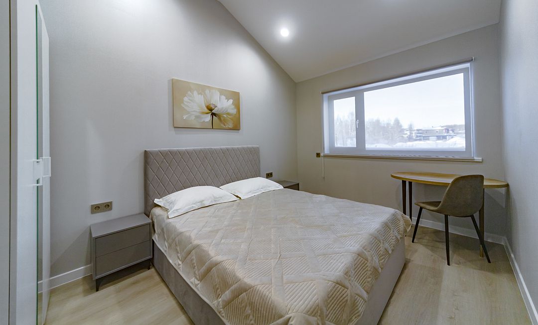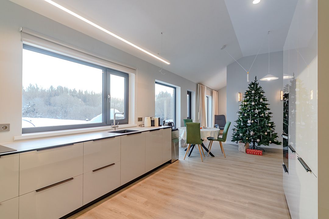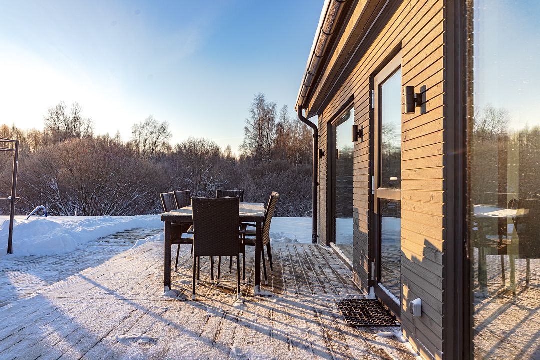 Комфортабельный, современный дом в элегантном скандинавском стиле подходит для тихого, спокойного и уединённого отдыха на природе. Внутреннее пространство продумано до мелочей, в нем сочетаются стиль и современные удобства. Рядом протекает река Охта. В шаговой доступности расположена детская площадка. Магазины находятся в 5 минутах езды.