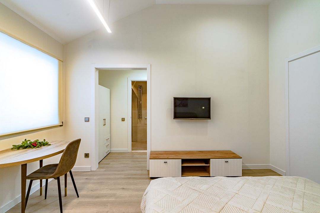 - 3 отдельных спальни с двуспальными кроватями: 2 кровати 160 см, одна кровать 140 см;