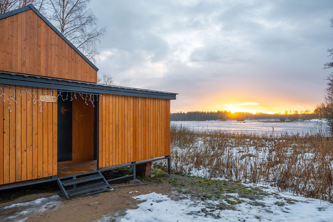 Двухместный дом у воды Ежевика или Черника c 1 комнатой с видом на озеро двуспальная кровать