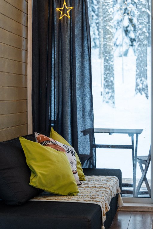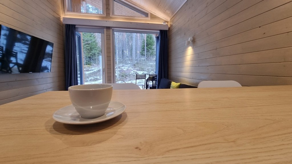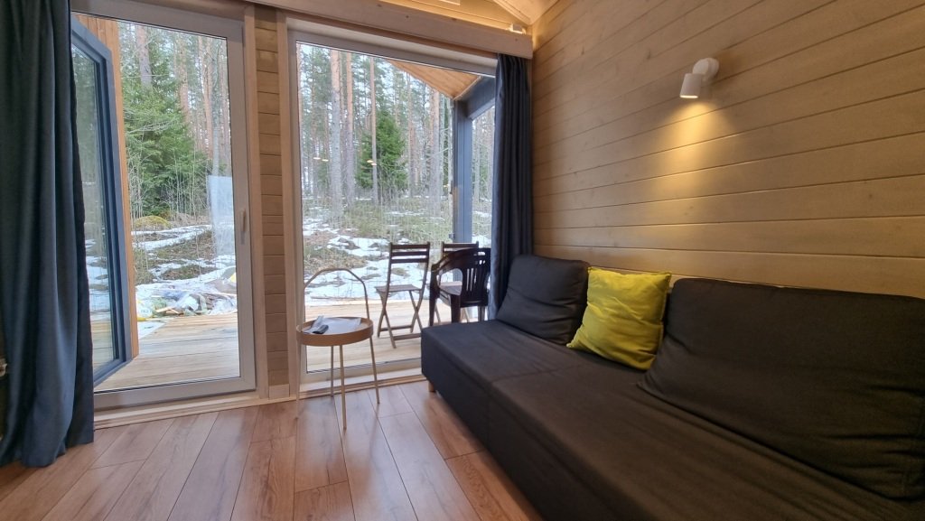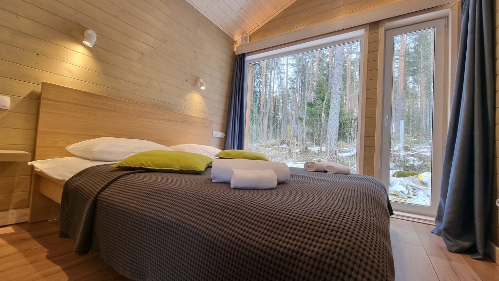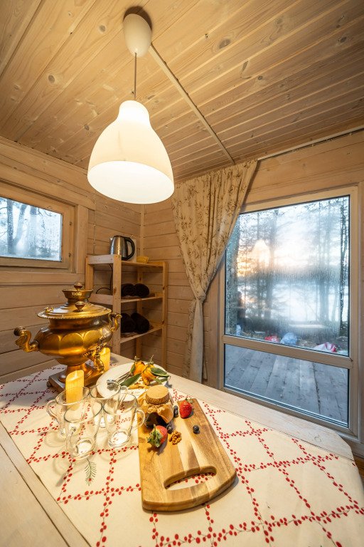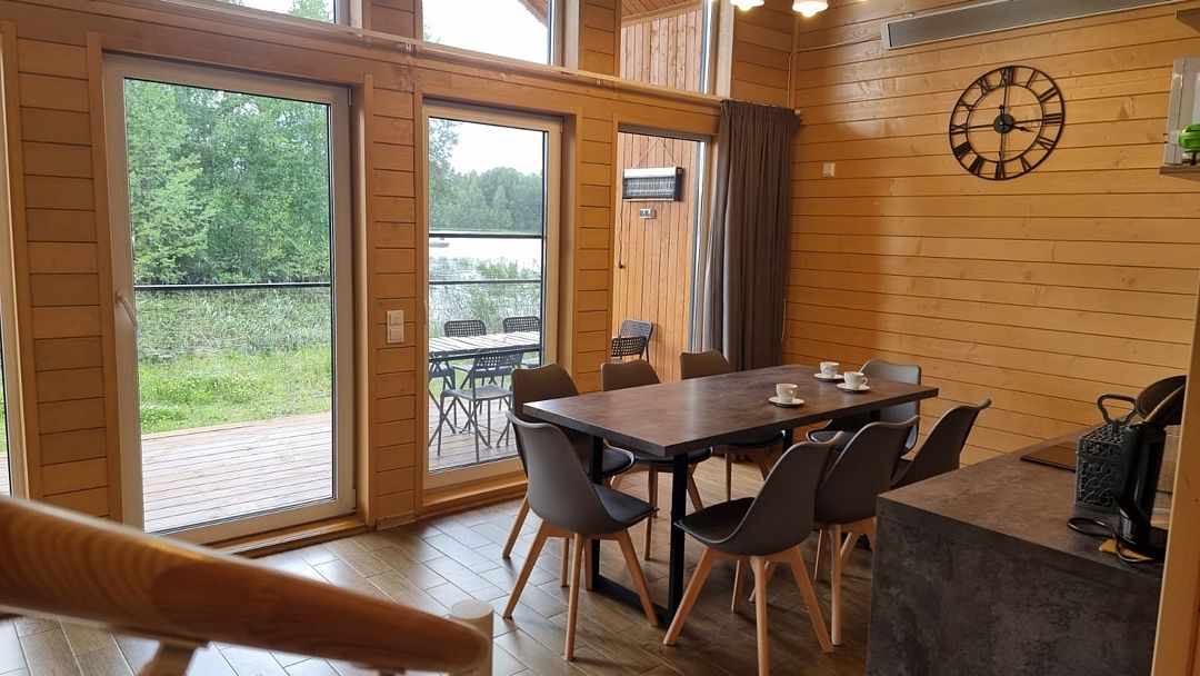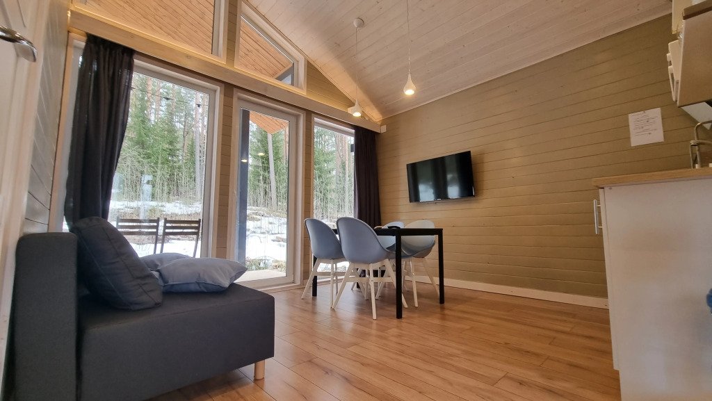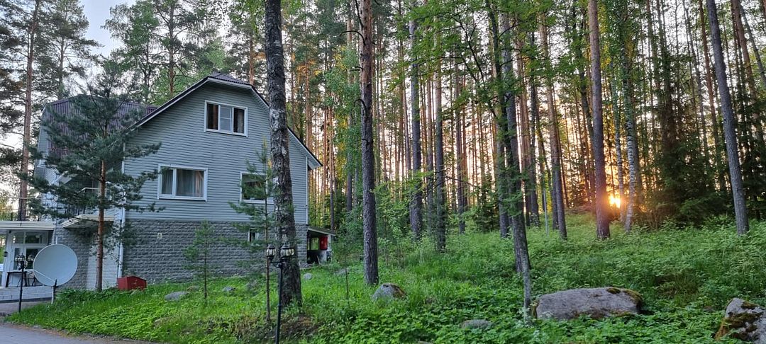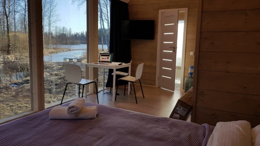 Из окон открывается прекрасный вид на о. Вуокса и лес. В 300 м находится уединенный пляж, где можно половить рыбу, искупаться и насладиться красотой природы Карельского перешейка. В интерьере домика гармонично сочетается простота с натуральными материалами в декоре.