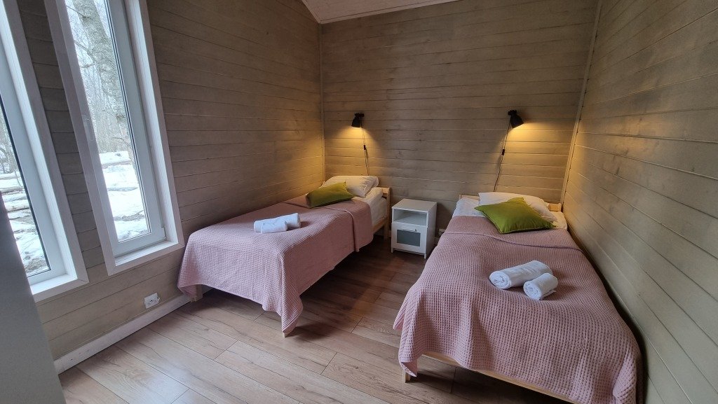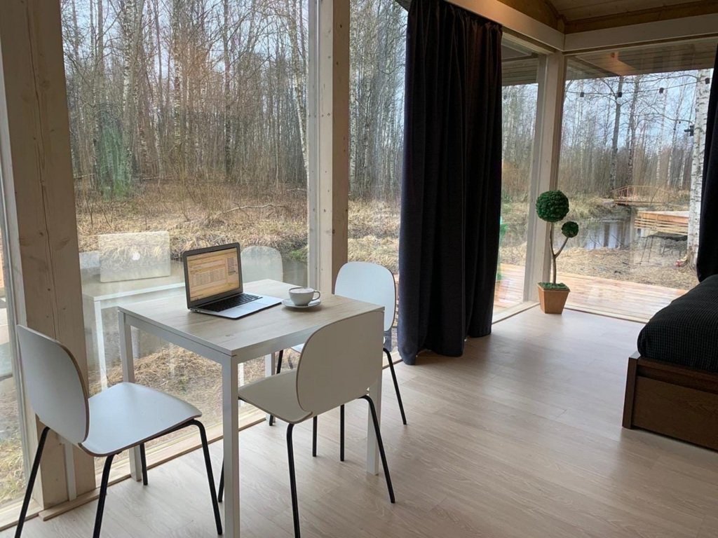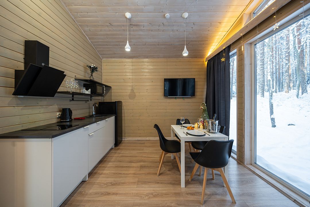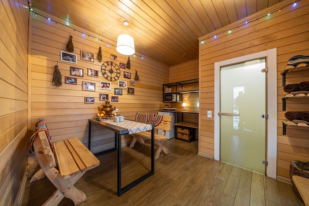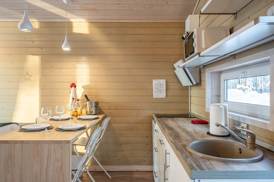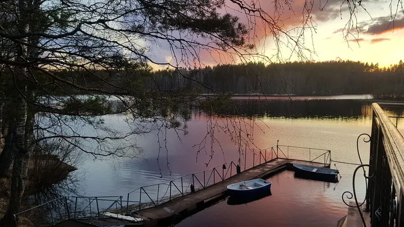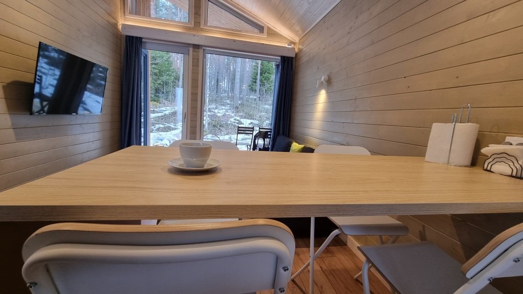 Из окон открывается прекрасный вид на о. Вуокса и лес. В 300 м находится уединенный пляж, где можно половить рыбу, искупаться и насладиться красотой природы Карельского перешейка. В интерьере домика гармонично сочетается простота с натуральными материалами в декоре.