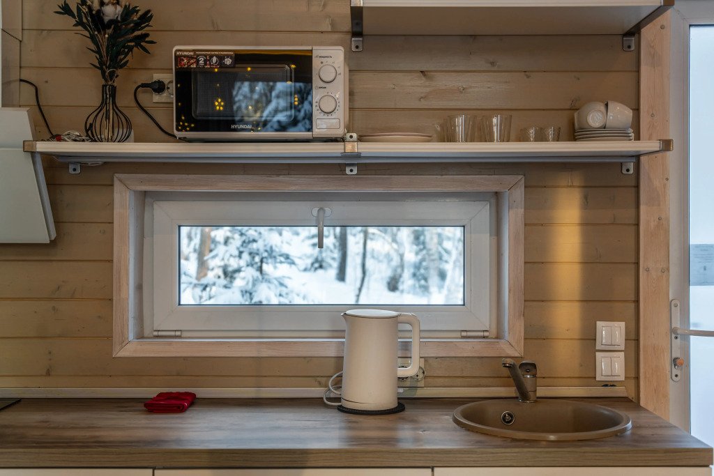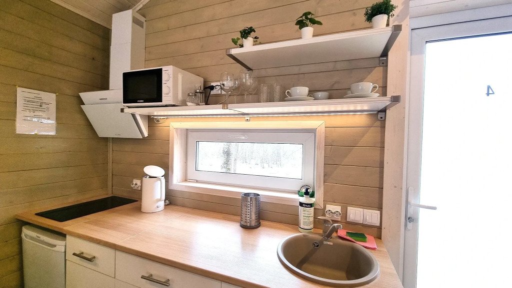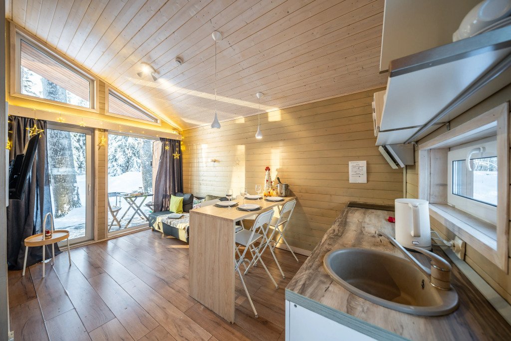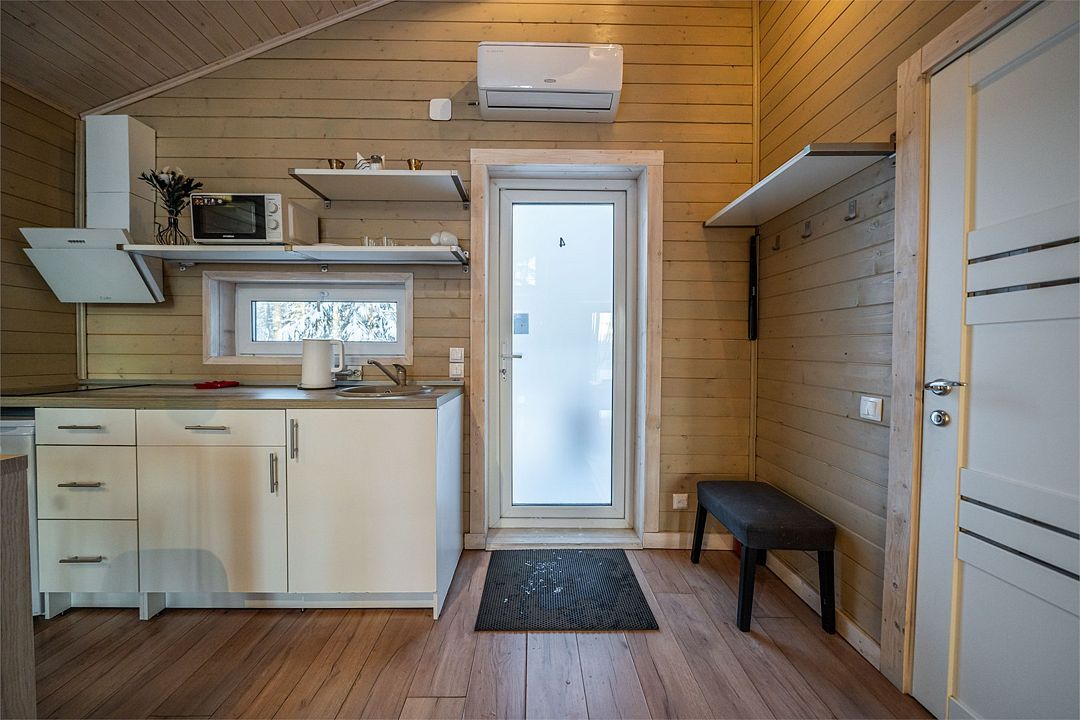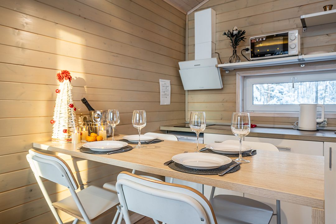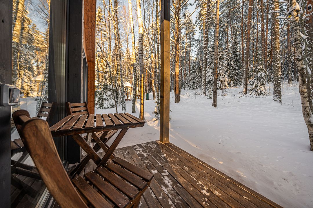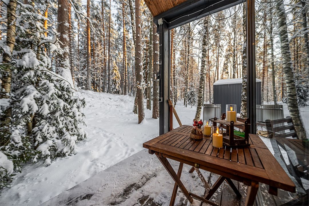 Из окон открывается прекрасный вид на о. Вуокса и лес. В 300 м находится уединенный пляж, где можно половить рыбу, искупаться и насладиться красотой природы Карельского перешейка. В интерьере домика гармонично сочетается простота с натуральными материалами в декоре.