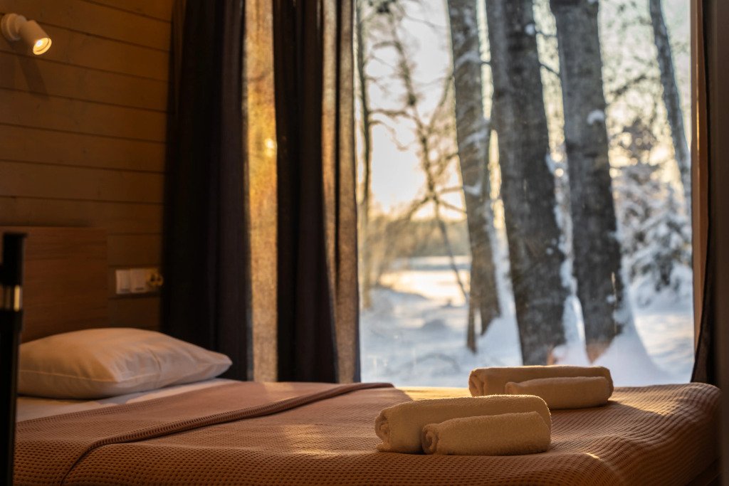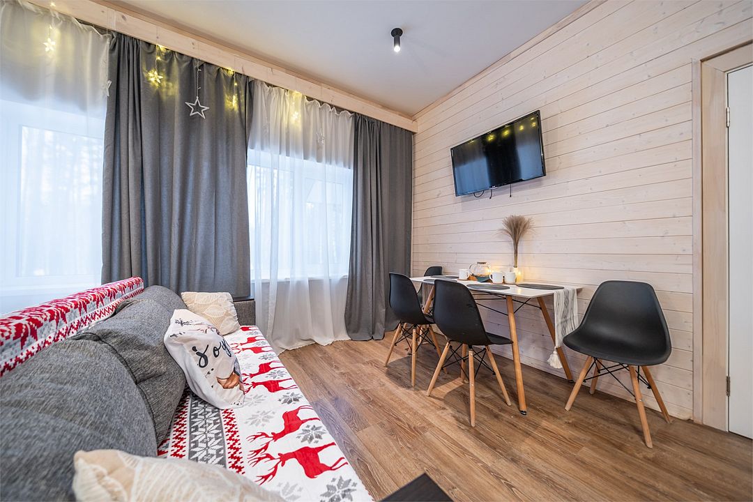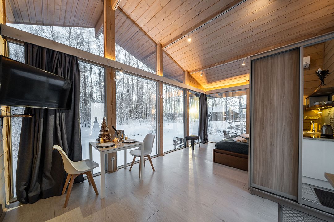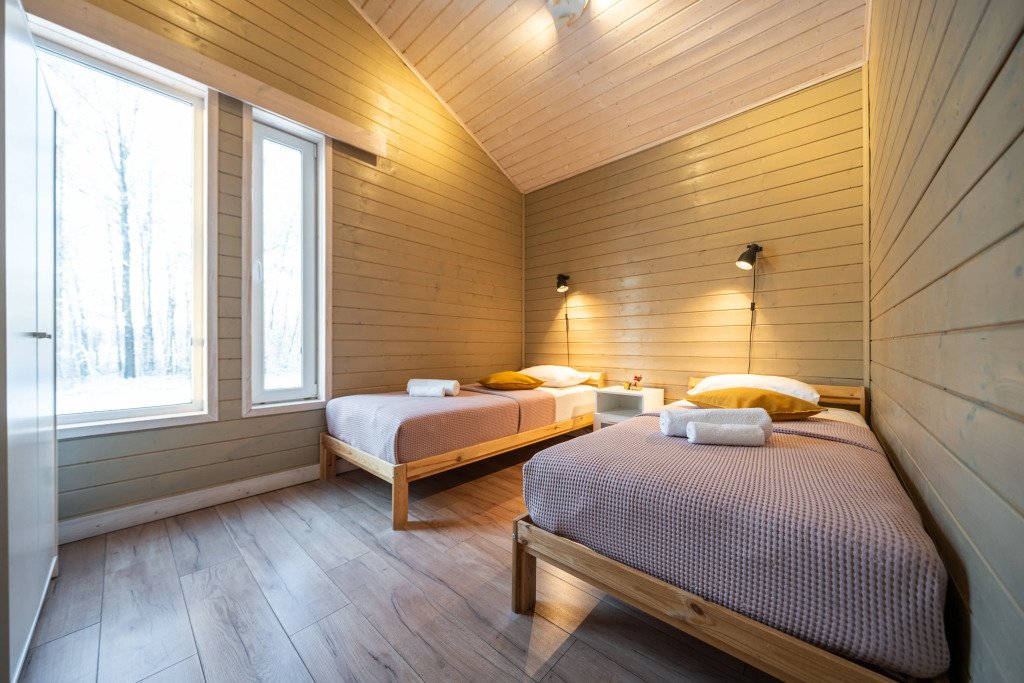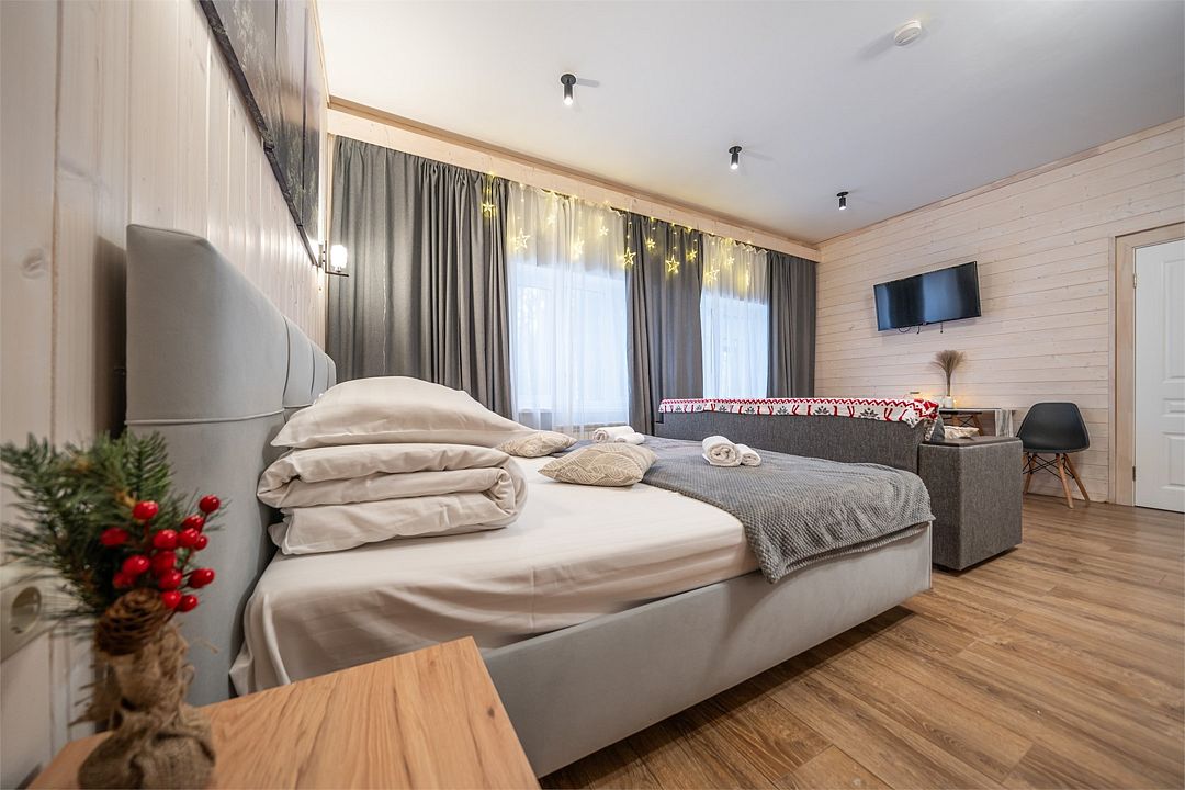 Уютный светлый номер площадью 35 кв. м, с окнами на внутренний дворик или с видом на лес, в котором одинаково комфортно может разместиться 2 взрослых или семья с детьми.