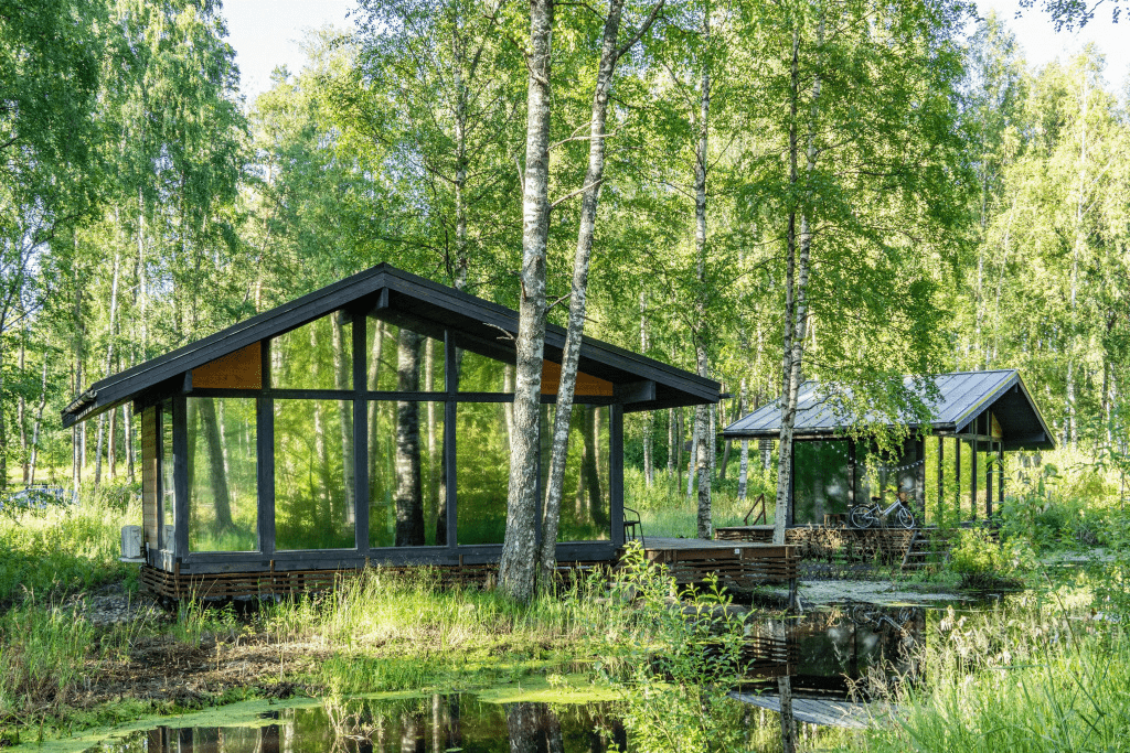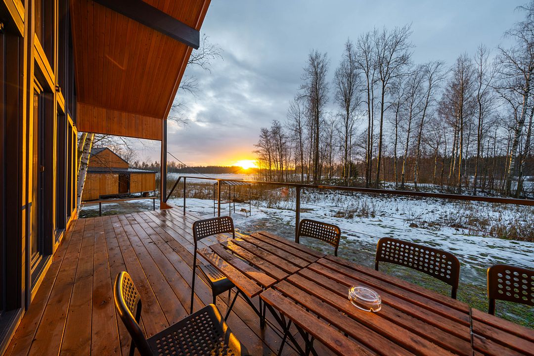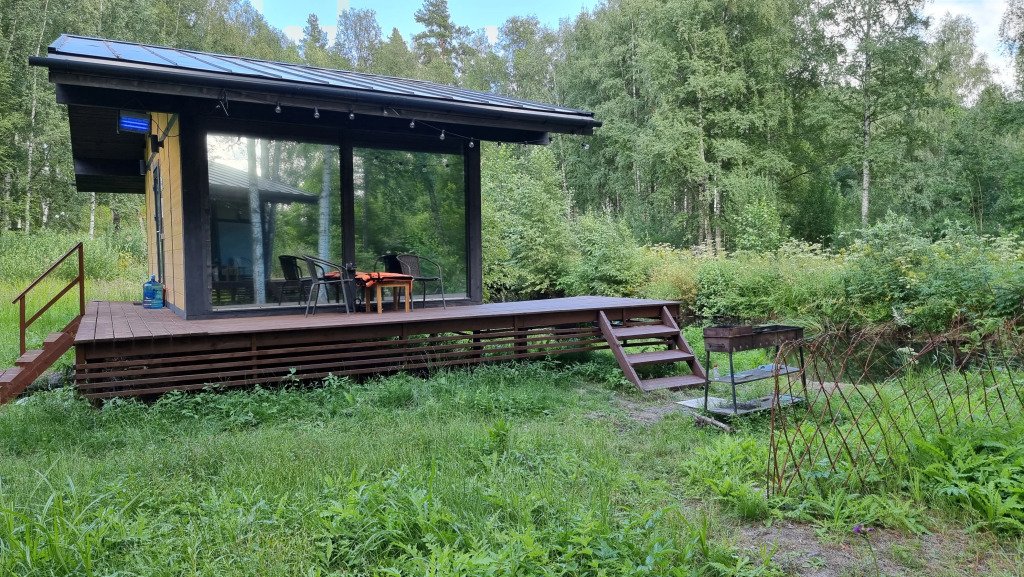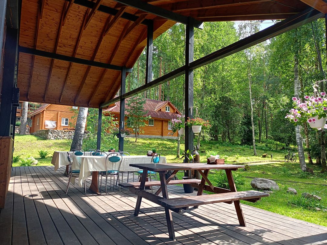 Дома на берегу Вуоксы с панорамным видом и террасой.
