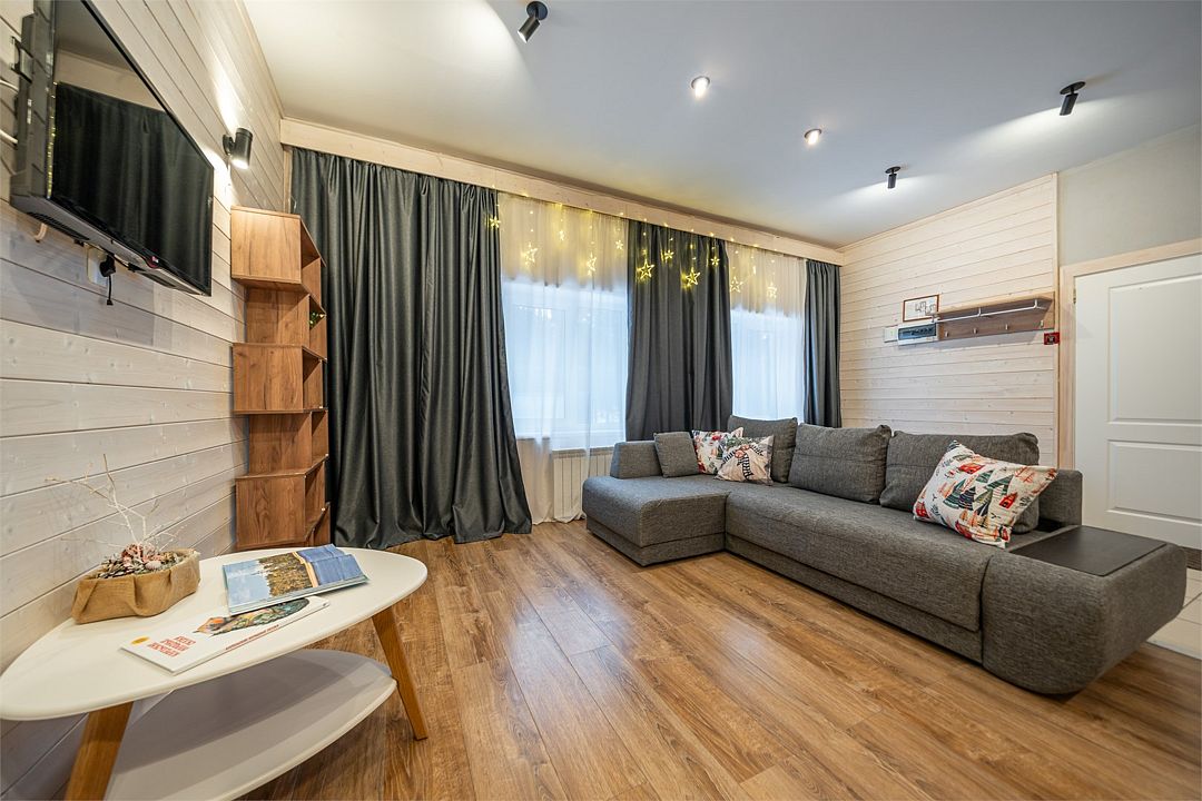 АП208: Апартаменты с ремонтом 208 2-комнатный 1 двухспальная +2 односпальные кровати + диван