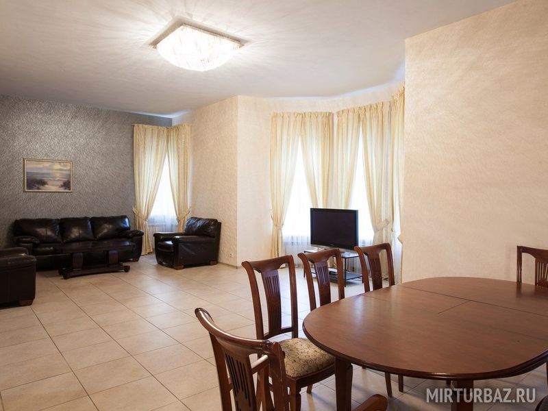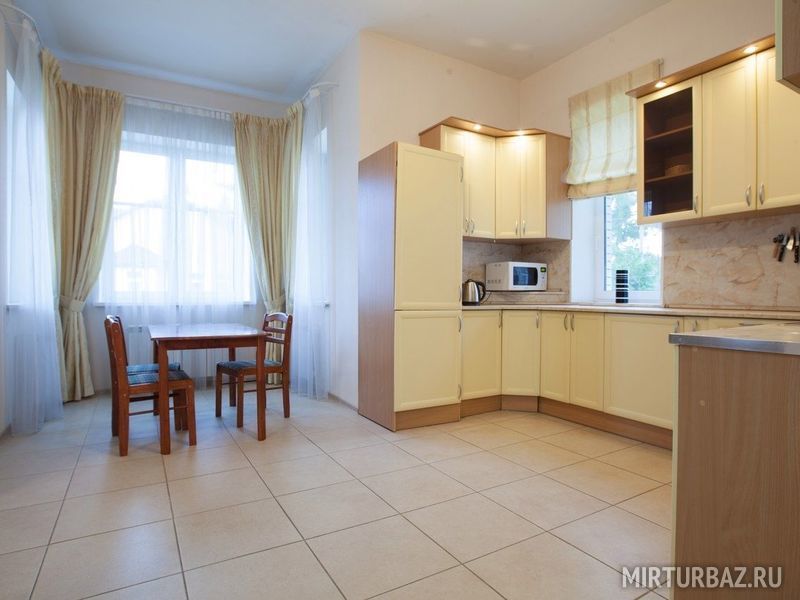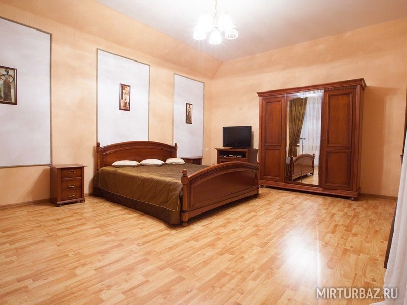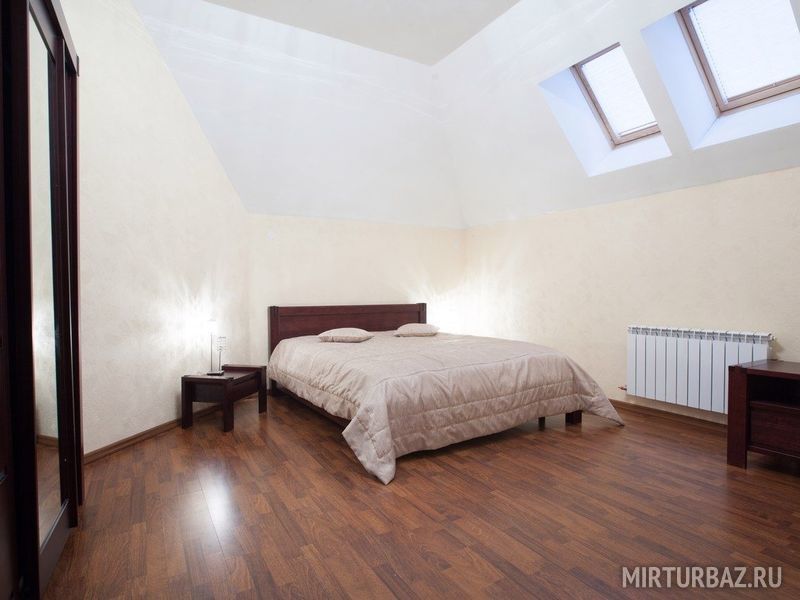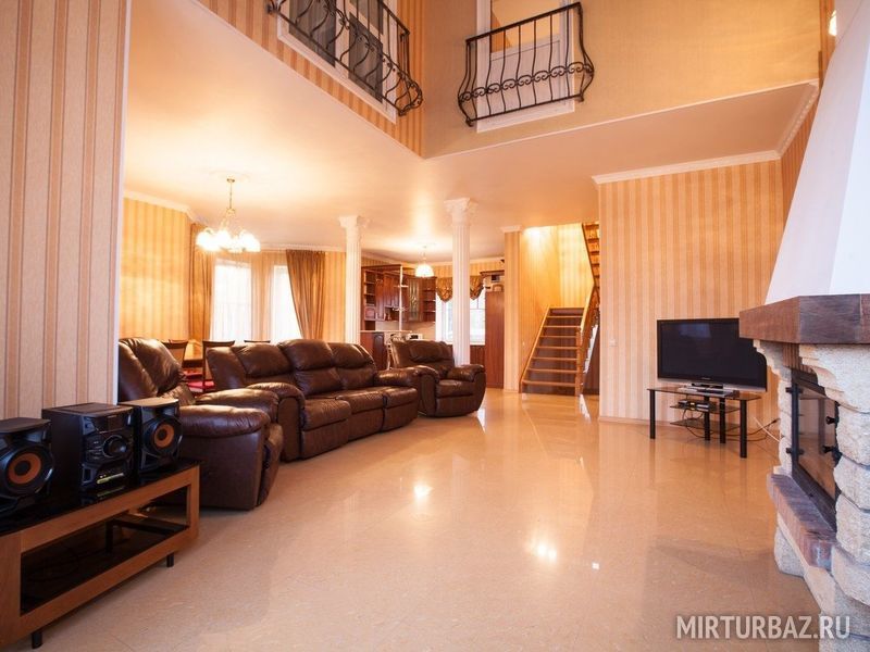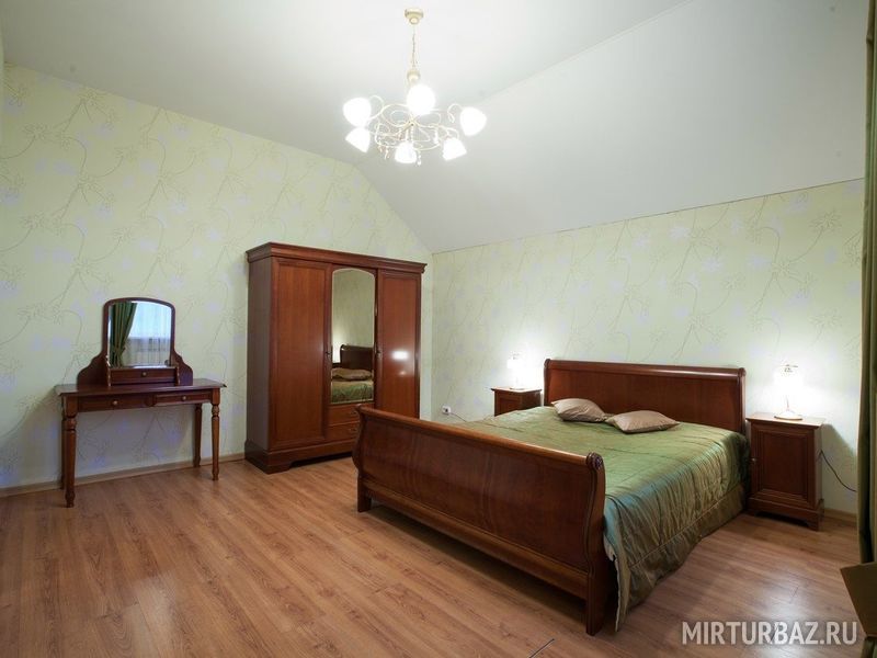 Просторный восьмикомнатный дом рассчитанный на шестнадцать гостей. На территории дома расположена беседка с мангалом. В самом доме — кухня, большая гостиная, ванная комната на втором этаже, туалетная комната на первом, и спальные комнаты с двуспальными кроватями. Есть возможность дополнительного размещения гостей.