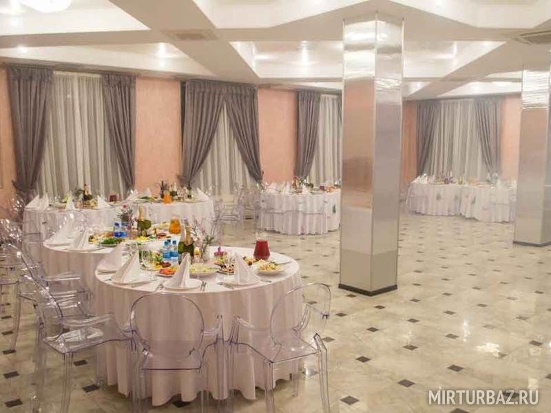 Большой банкетный зал представляет собой 2-этажное здание с балконом, панорамной площадкой и парковкой. Максимальная вместимость до 100 человек.