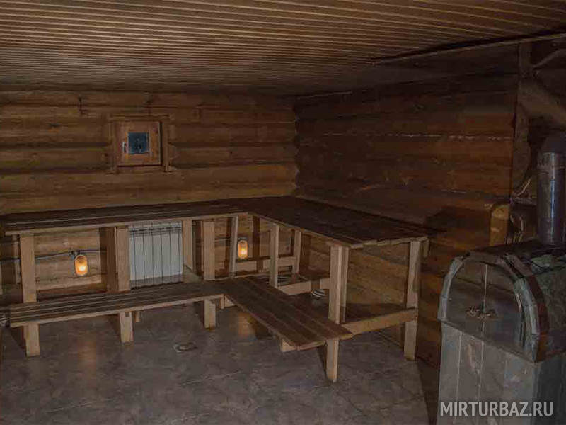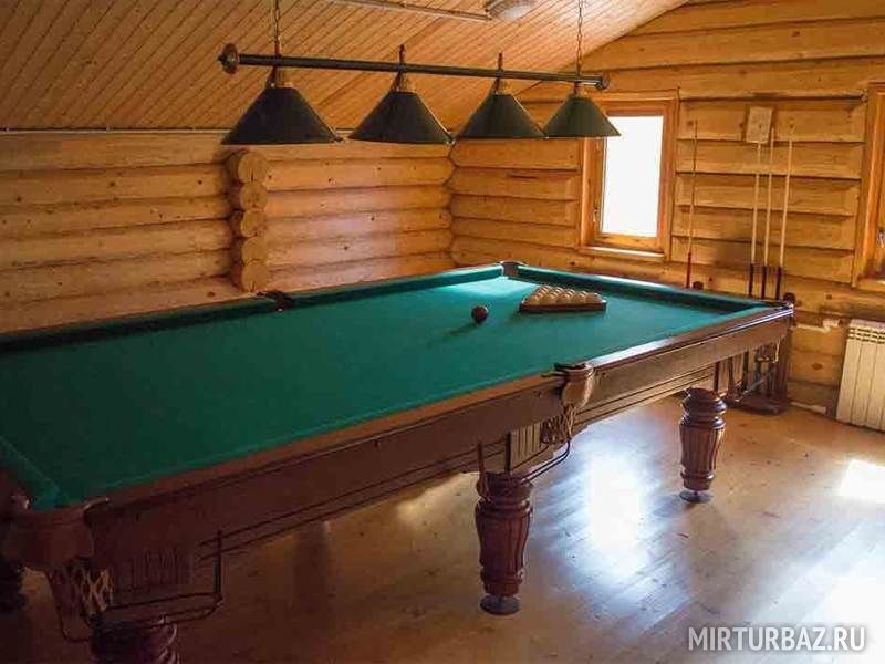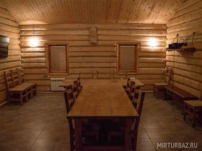 Общая площадь русской бани составляет 210 м². В бане 2 комнаты отдыха, большая парная, купель, бассейн с подогревом и противотоком, душевая, бильярд и обеденный зал до 20 человек.