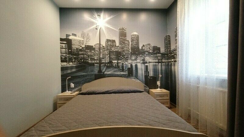 спальню с двумя кроватями, две тумбочки, шкаф,