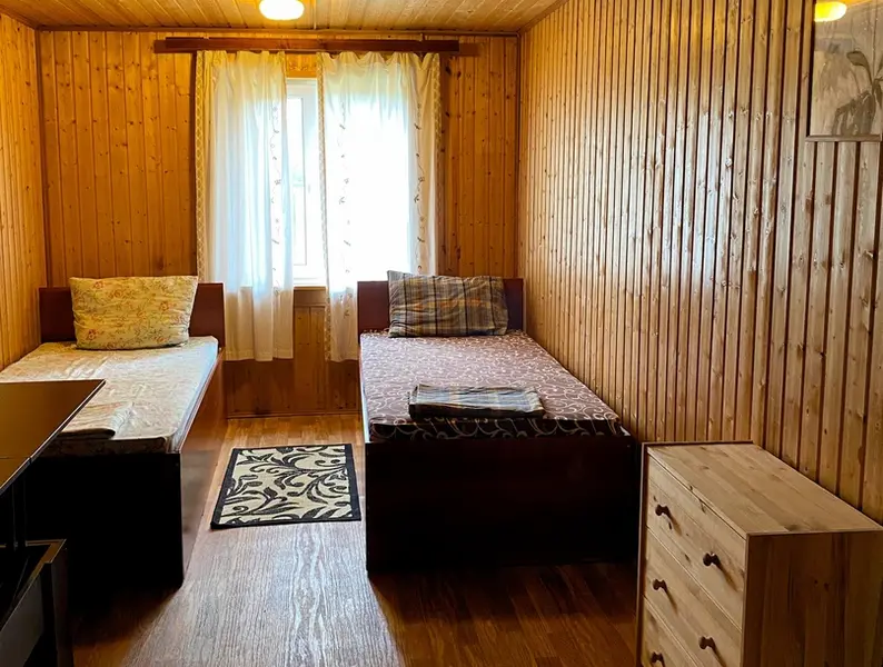Бюджетный вариант проживания! Отдельный домик, оборудованный для проживания 4-х человек. Две изолированные комнаты, объединенные проходной кухней. Санузел. Чугунная печка.