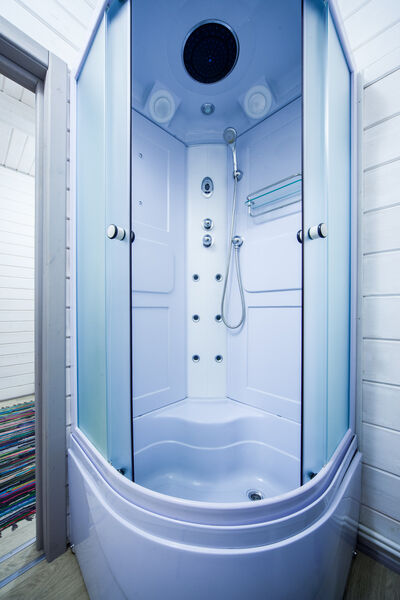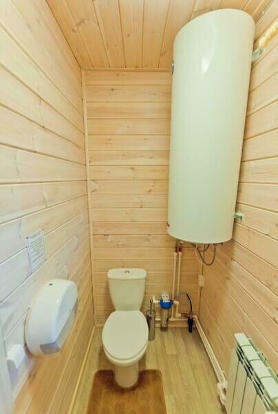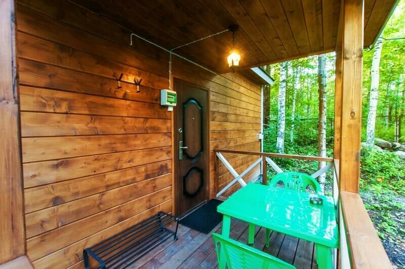 Одноэтажный коттедж-студия с уютной верандой, на которой стоит уличный столик и стулья. Коттедж разделен на 3 части: гостиную, оборудованную кухонным гарнитуром, спальню и туалетную комнату. В гостиной имеется удобный диван, на котором могут расположиться 2 гостя, стол с табуретками, шкаф, телевизор. В кухонный гарнитур встроен мини-холодильник, также есть микроволновая печь, мультиварка, электрочайник, раковина, посуда и столовые приборы на 4-х персон. В спальне находятся 2 односпальные кровати-трансформеры, из которых можно сделать 1 большую двуспальную , а также две тумбочки между ними. Туалетная комната оснащена душевой кабиной, раковиной, унитазом. В ней уже есть шампуни, мыло, полотенца, тапочки, туалетная бумага. В домике есть горячая и холодная вода, отопление.