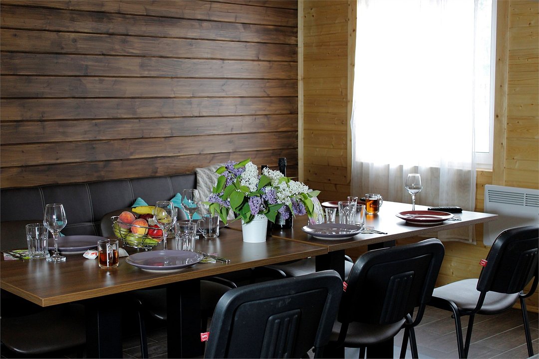 У каждого номера и коттеджа есть своя зона барбекю: мангал в распоряжении гостей (шампура и решетки выдаются бесплатно), место для отдыха на открытом воздухе с садовой мебелью. Для 8- и 10-местных коттеджей предусмотрены беседки, использование которых включено в стоимость проживания.